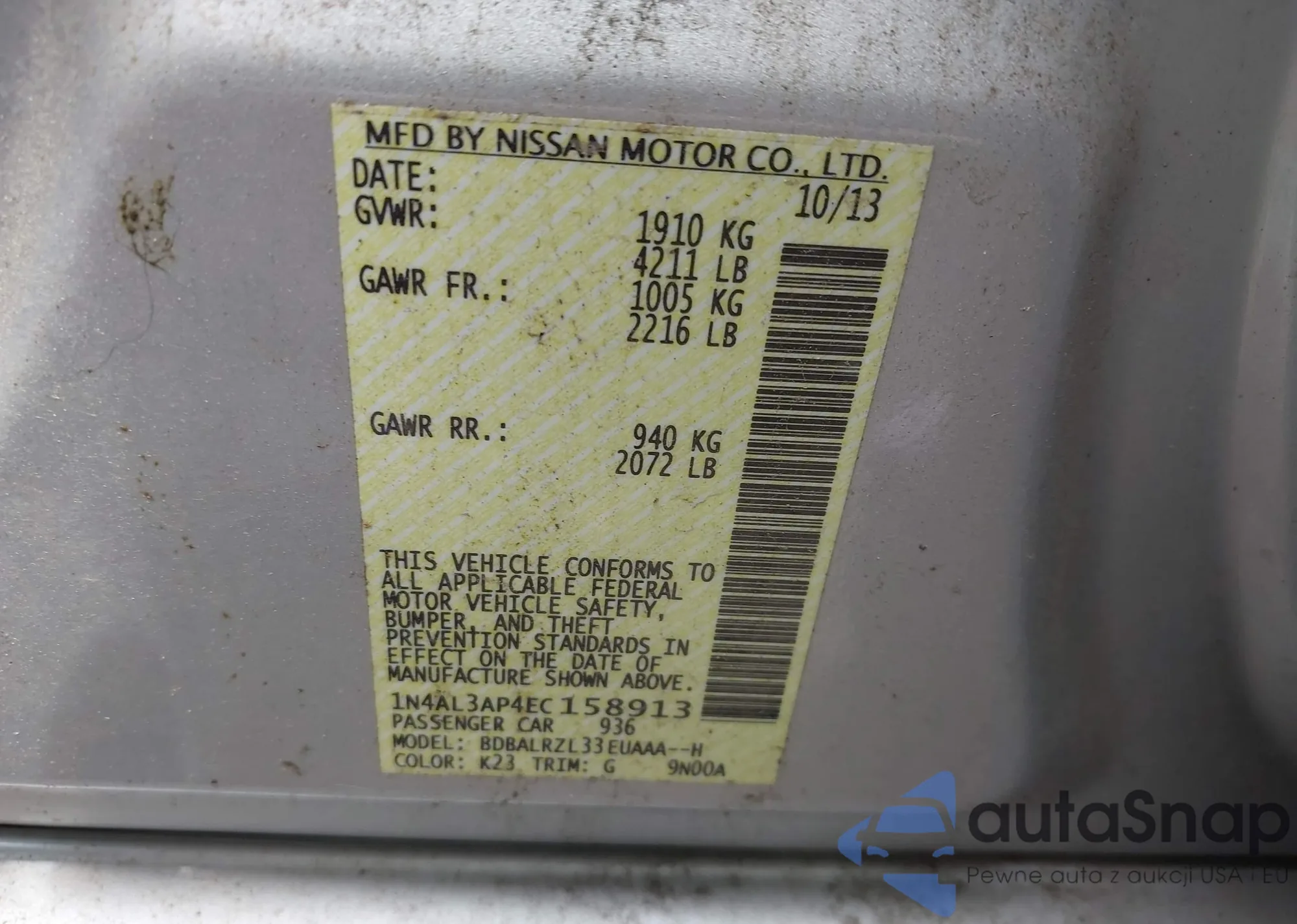 VIN: 1N4AL3AP4EC158913