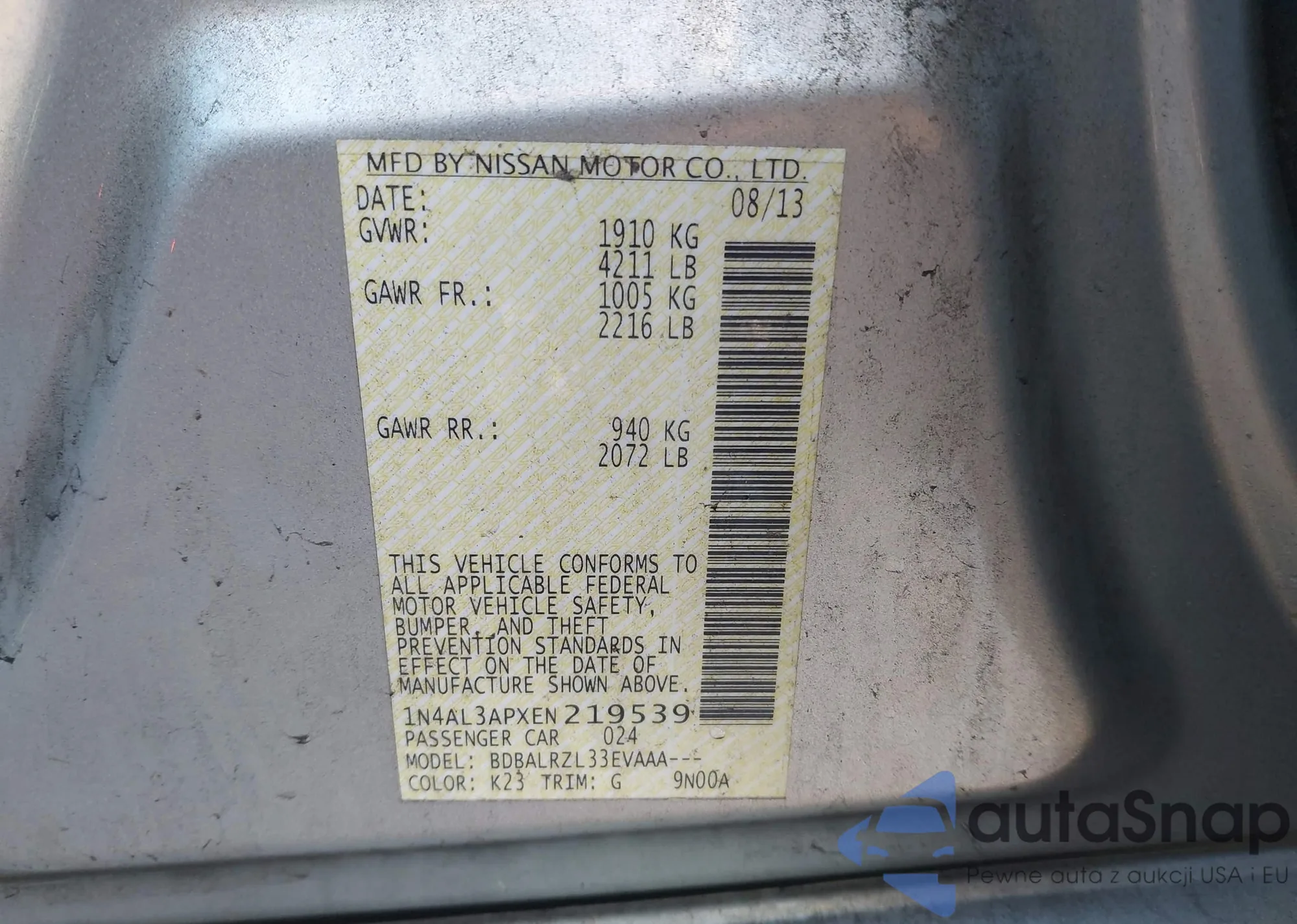 VIN: 1N4AL3APXEN219539