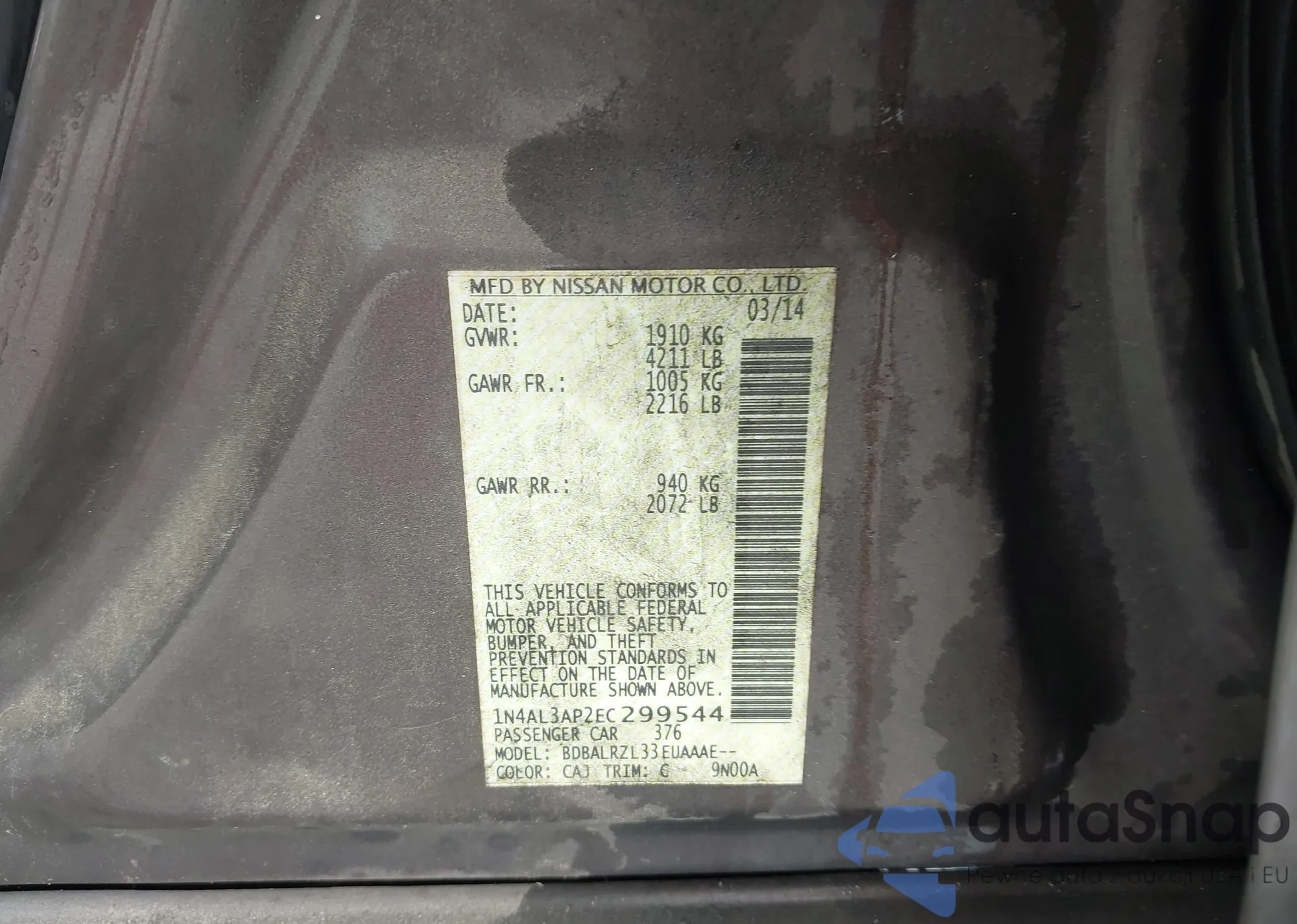 • VIN: 1N4AL3AP2EC299544