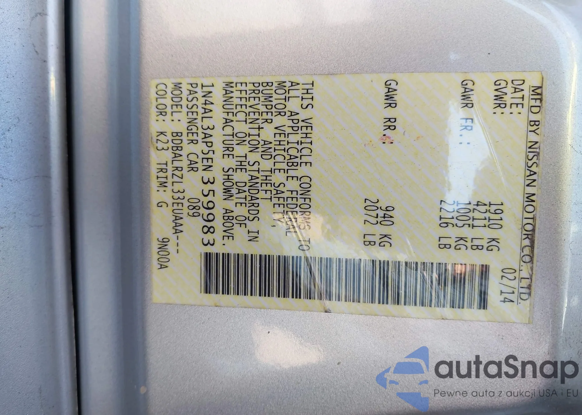 VIN: 1N4AL3AP5EN359983