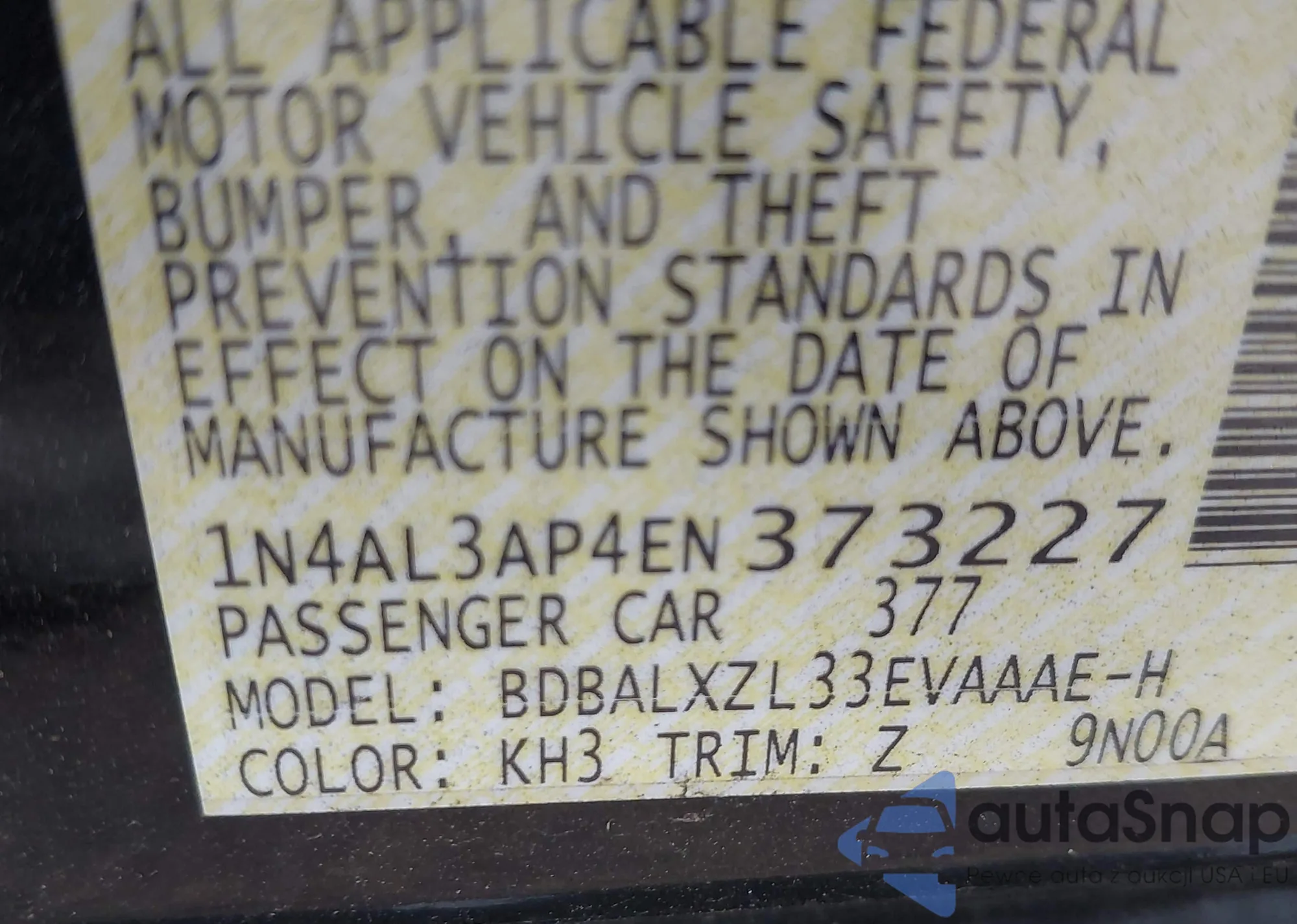 VIN: 1N4AL3AP4EN373227