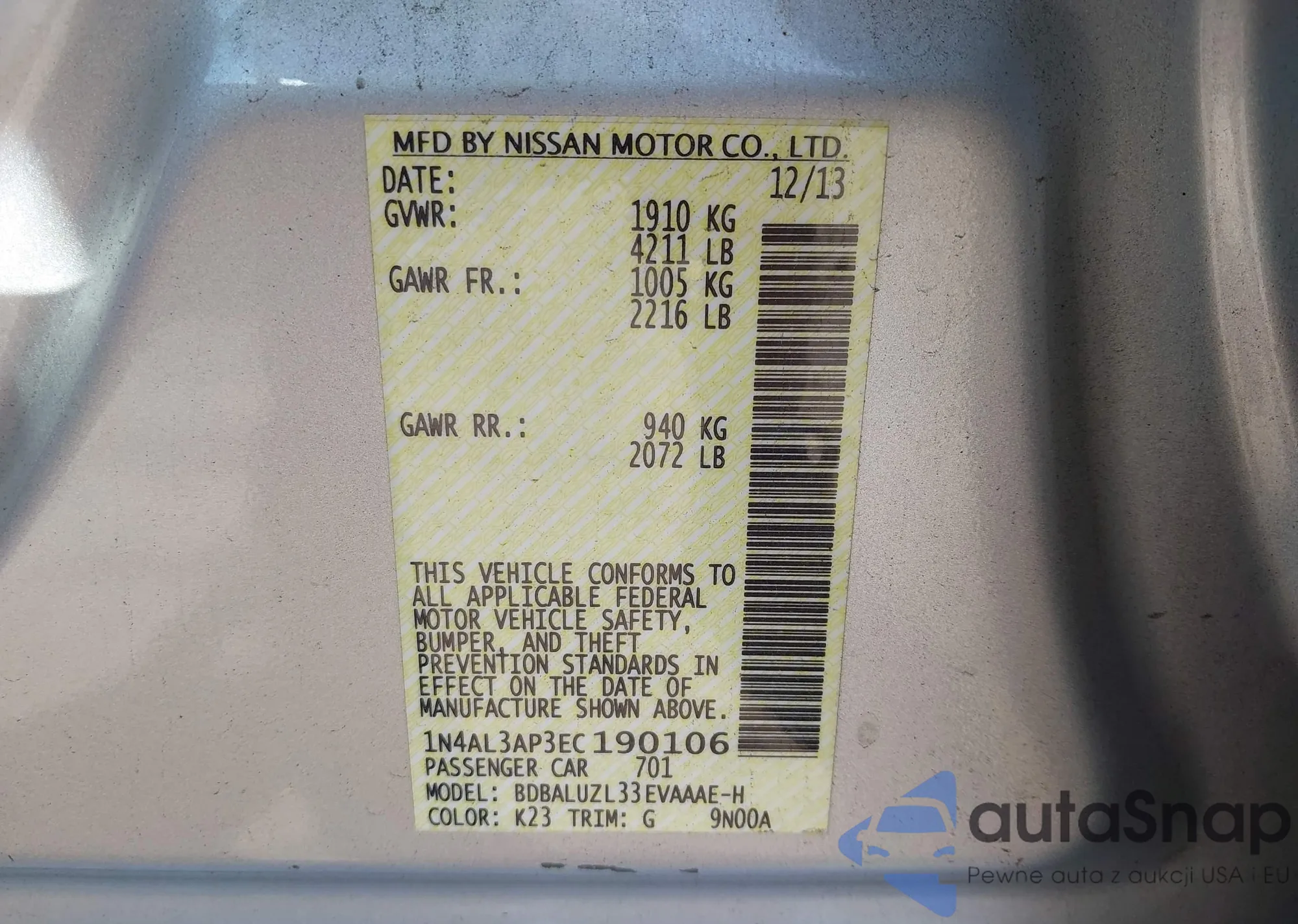 VIN: 1N4AL3AP3EC190106