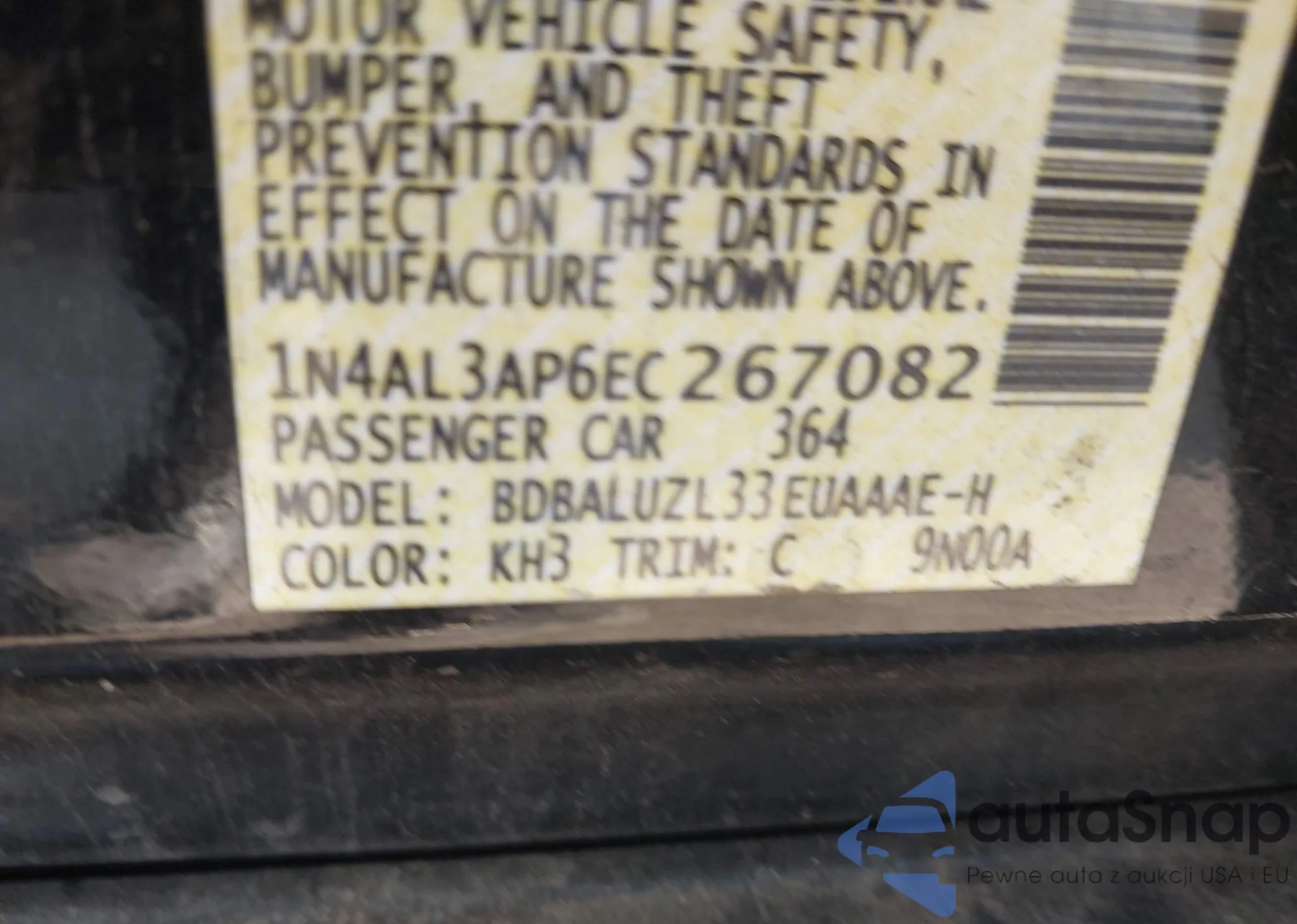 VIN: 1N4AL3AP6EC267082