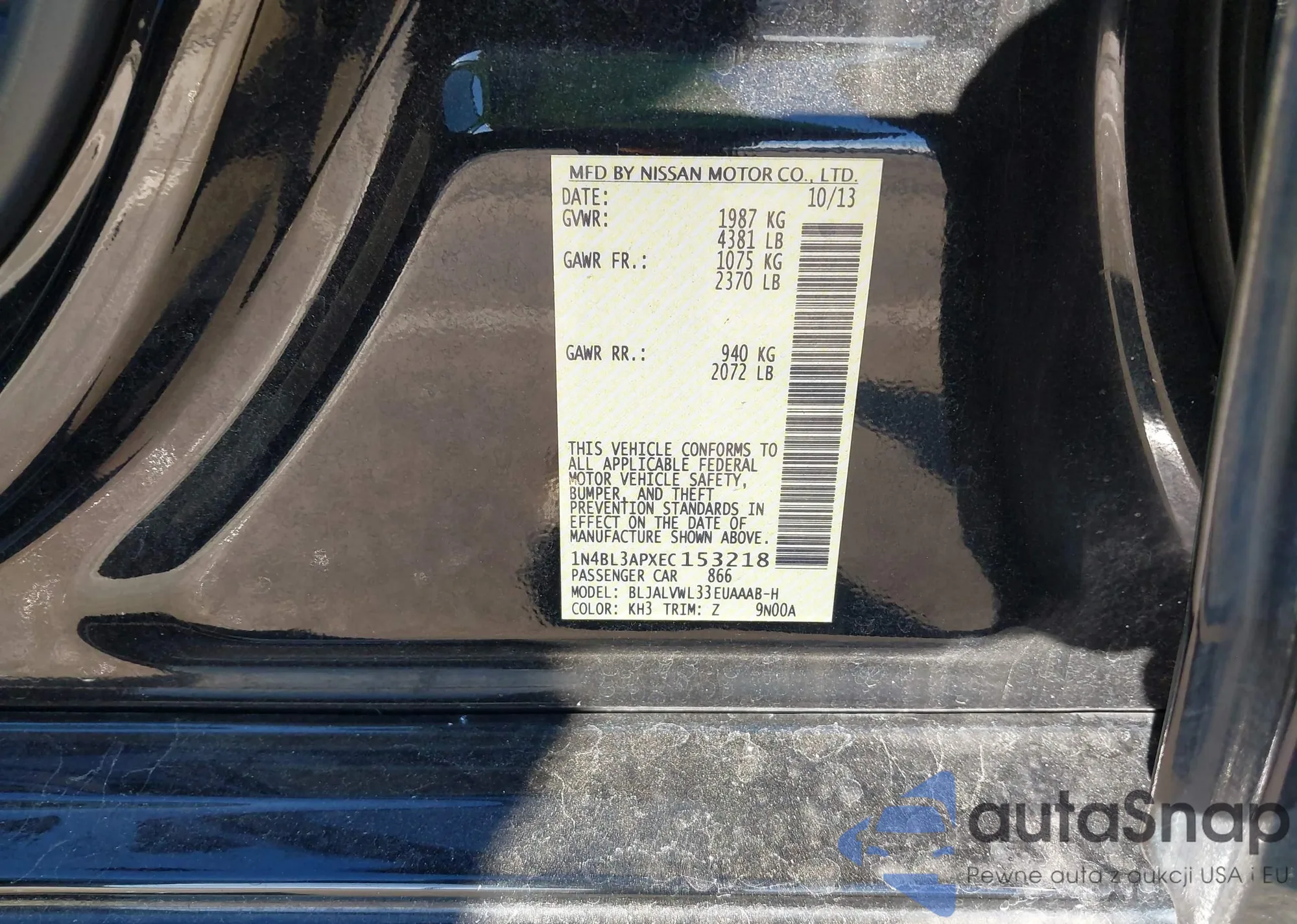 • VIN: 1N4BL3APXEC153218