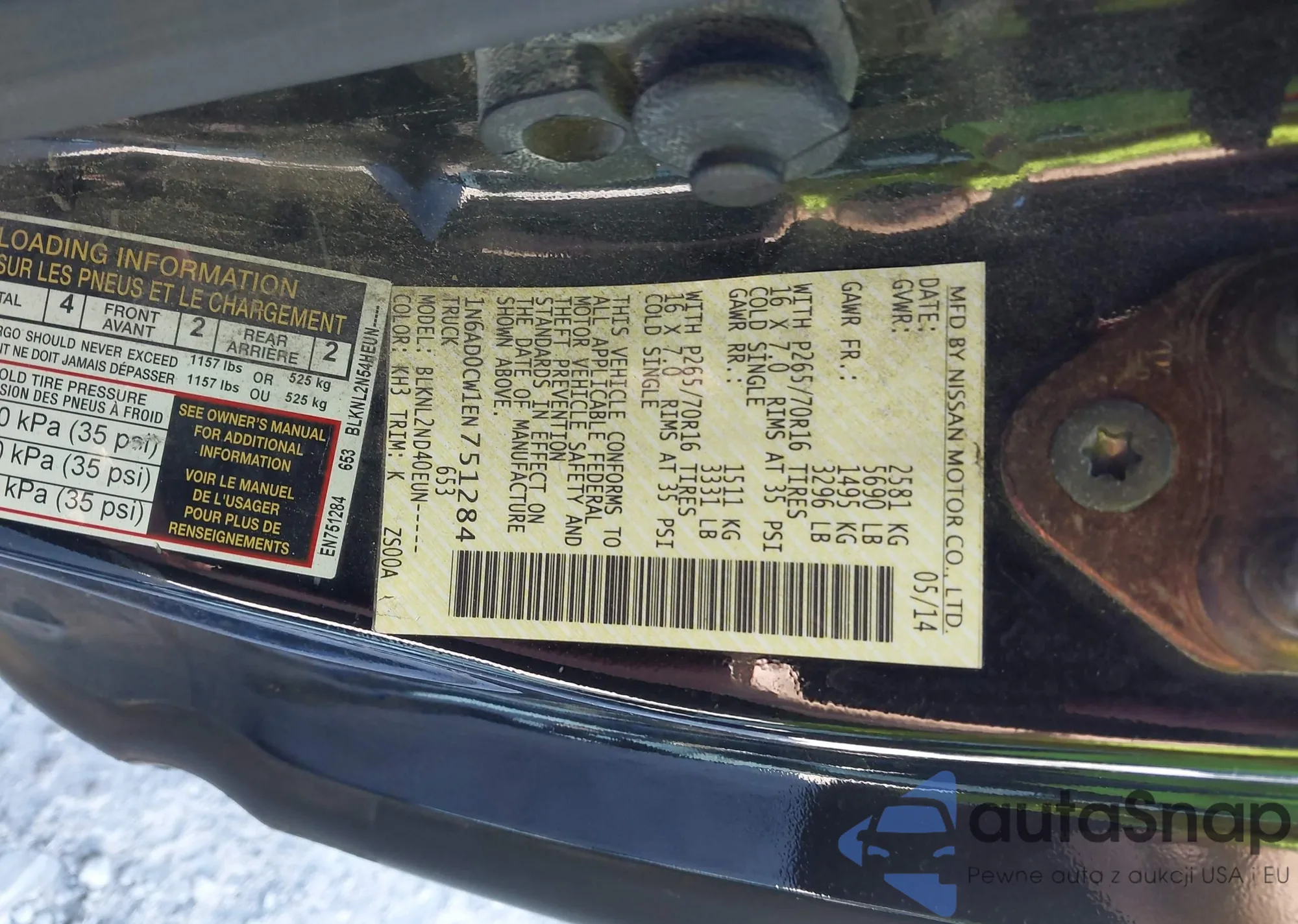 Samochód Nissan Navara (Frontier) 2014 (VIN 1N6AD0CW1EN751284) nie był wcześniej licytowany. Dokumenty są czyste, przebieg odpowiada lub jest niższy niż średnia rynku. Sprzedaje go firma ubezpieczeniowa – polecamy zakup. Dostawa do portu zajmie ok. 6–8 tygodni.