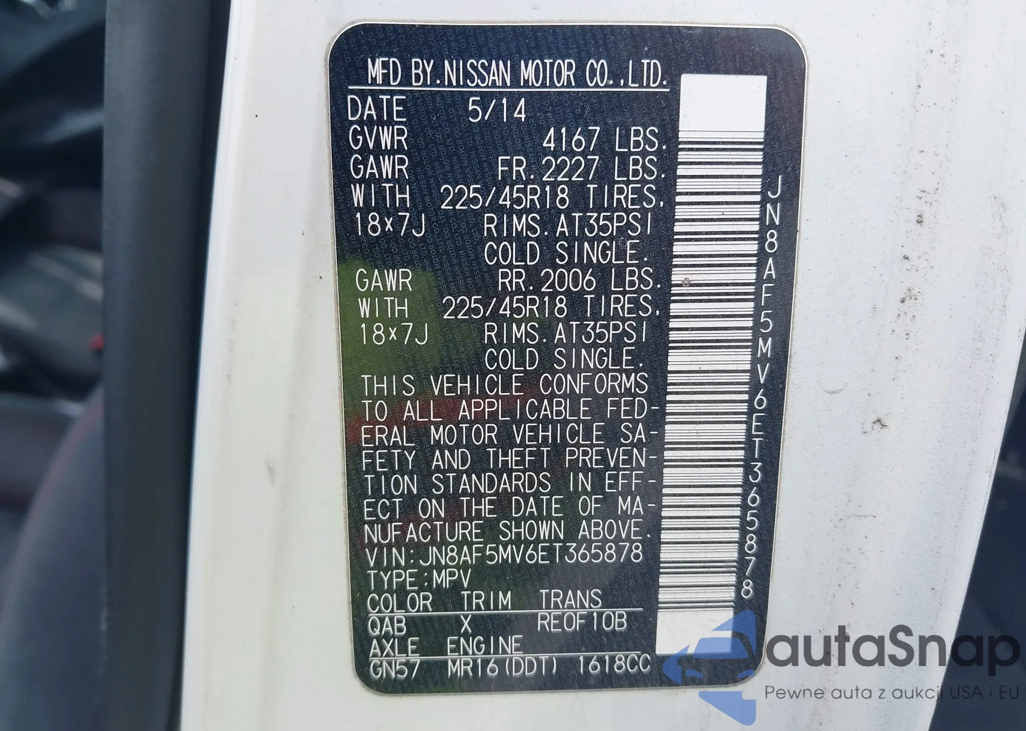 VIN: JN8AF5MV6ET365878