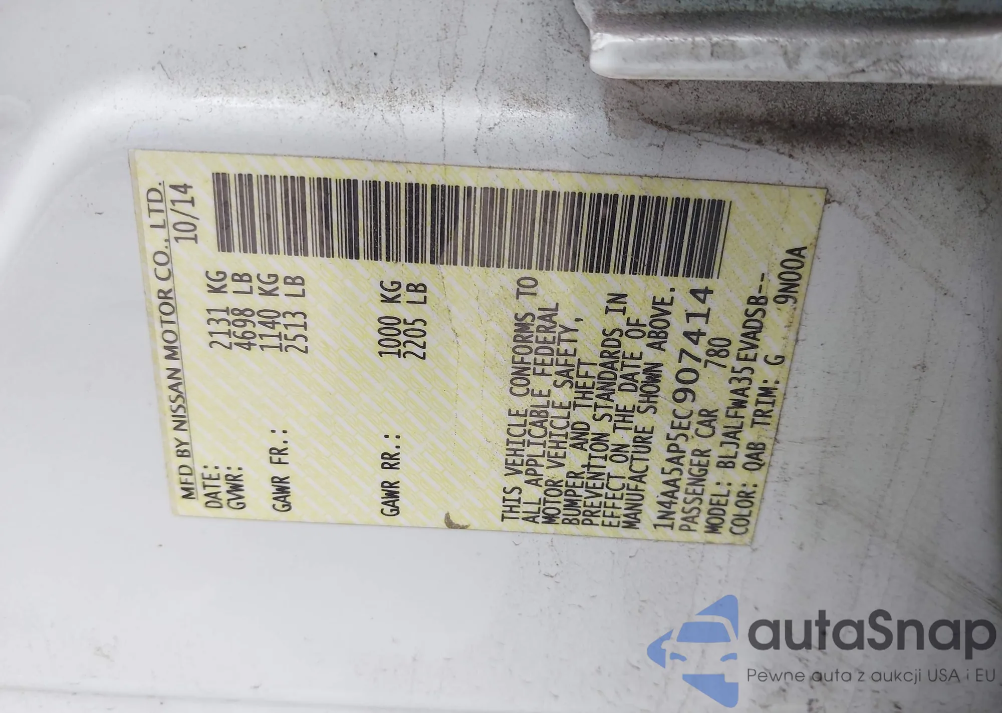 • VIN: 1N4AA5AP5EC907414