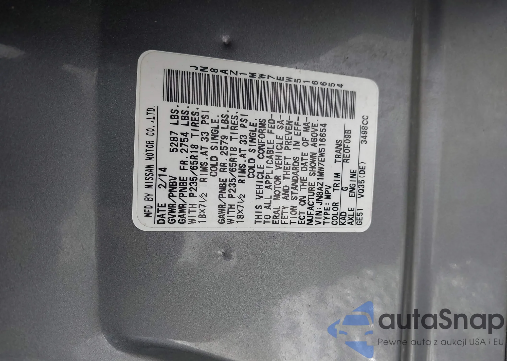 VIN: JN8AZ1MW7EW516654