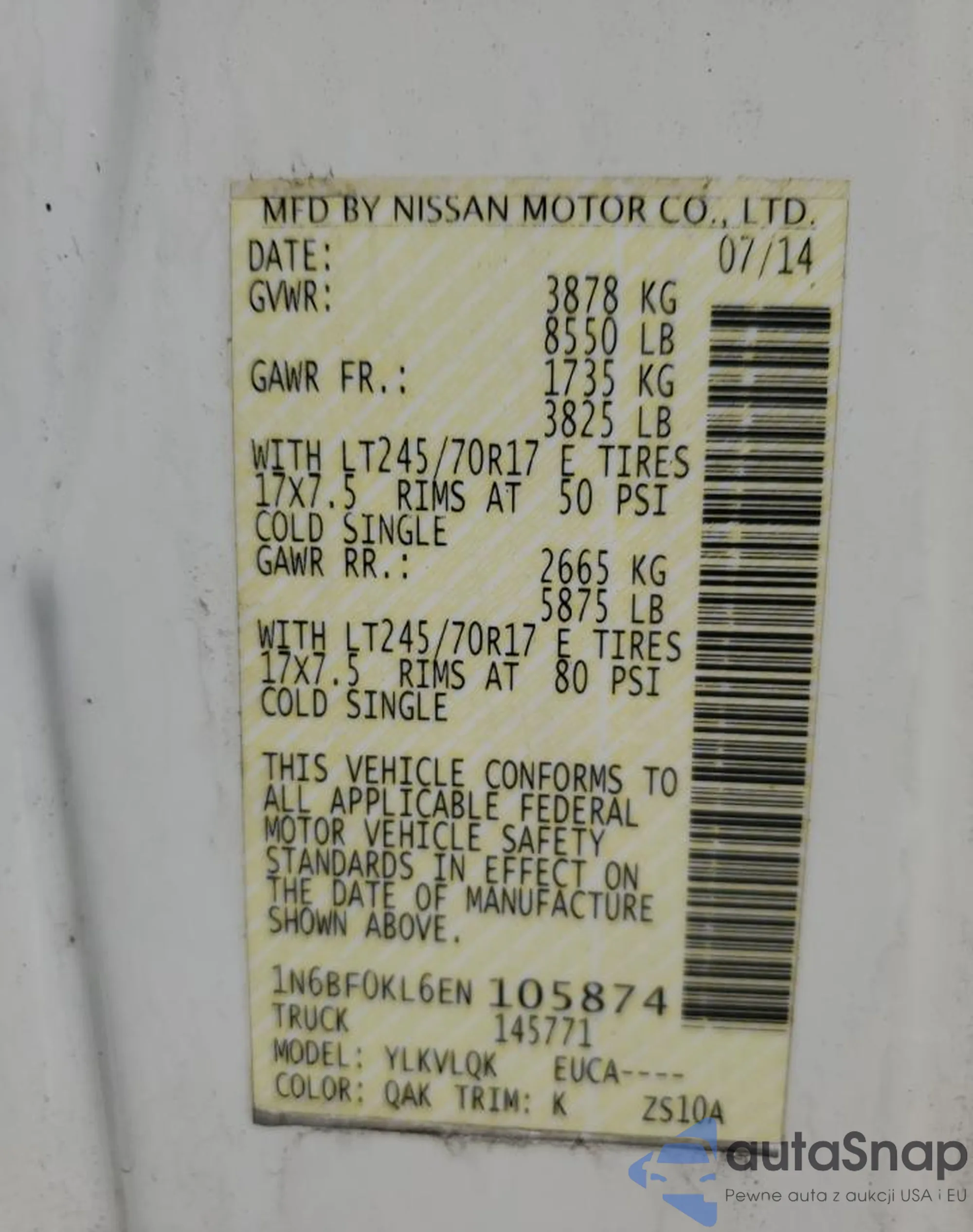 • VIN: 1N6BF0KL6EN105874
