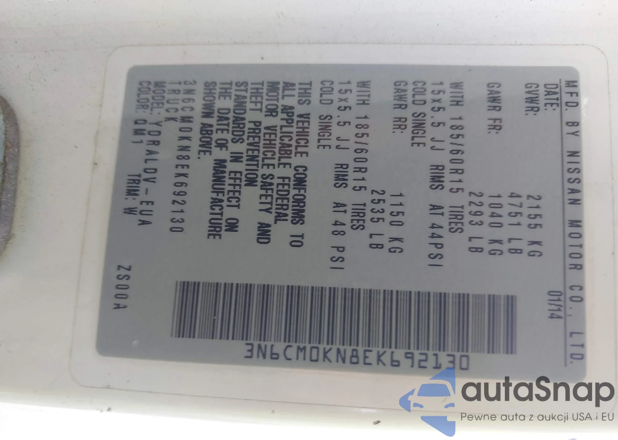 VIN: 3N6CM0KN8EK692130