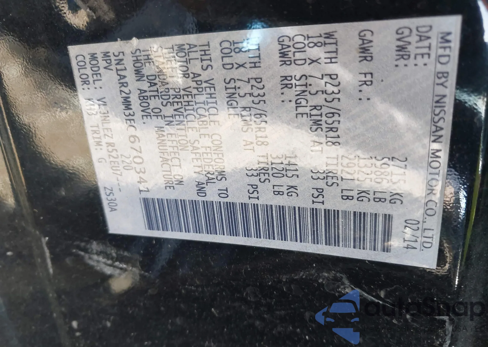 VIN: 5N1AR2MM3EC670341