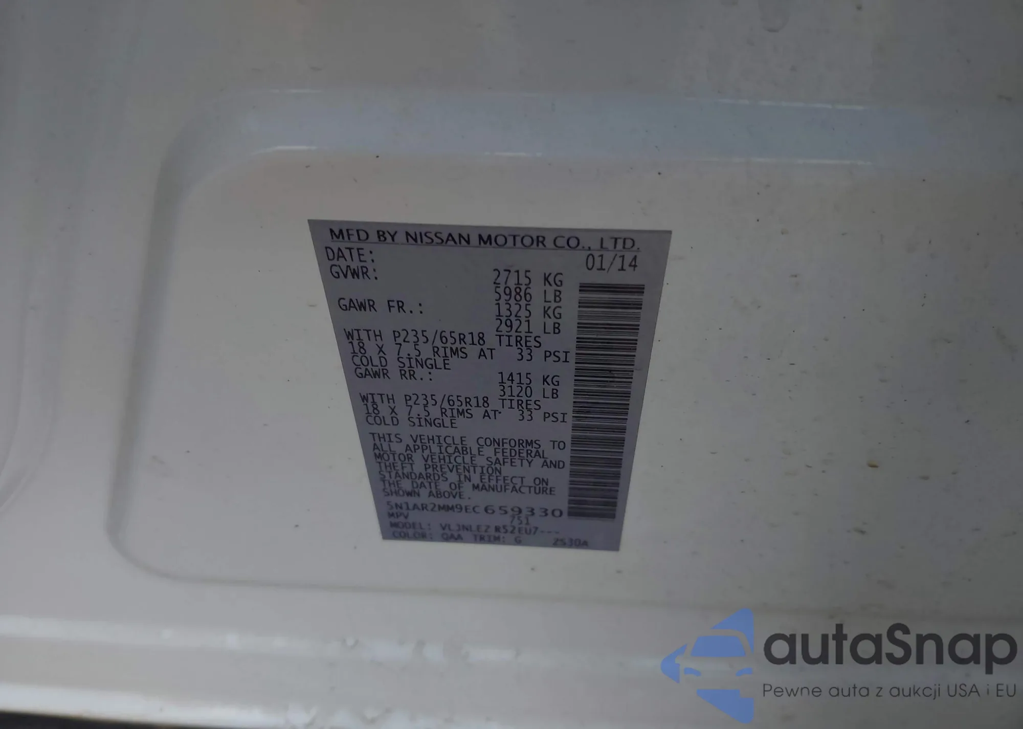 VIN: 5N1AR2MM9EC659330