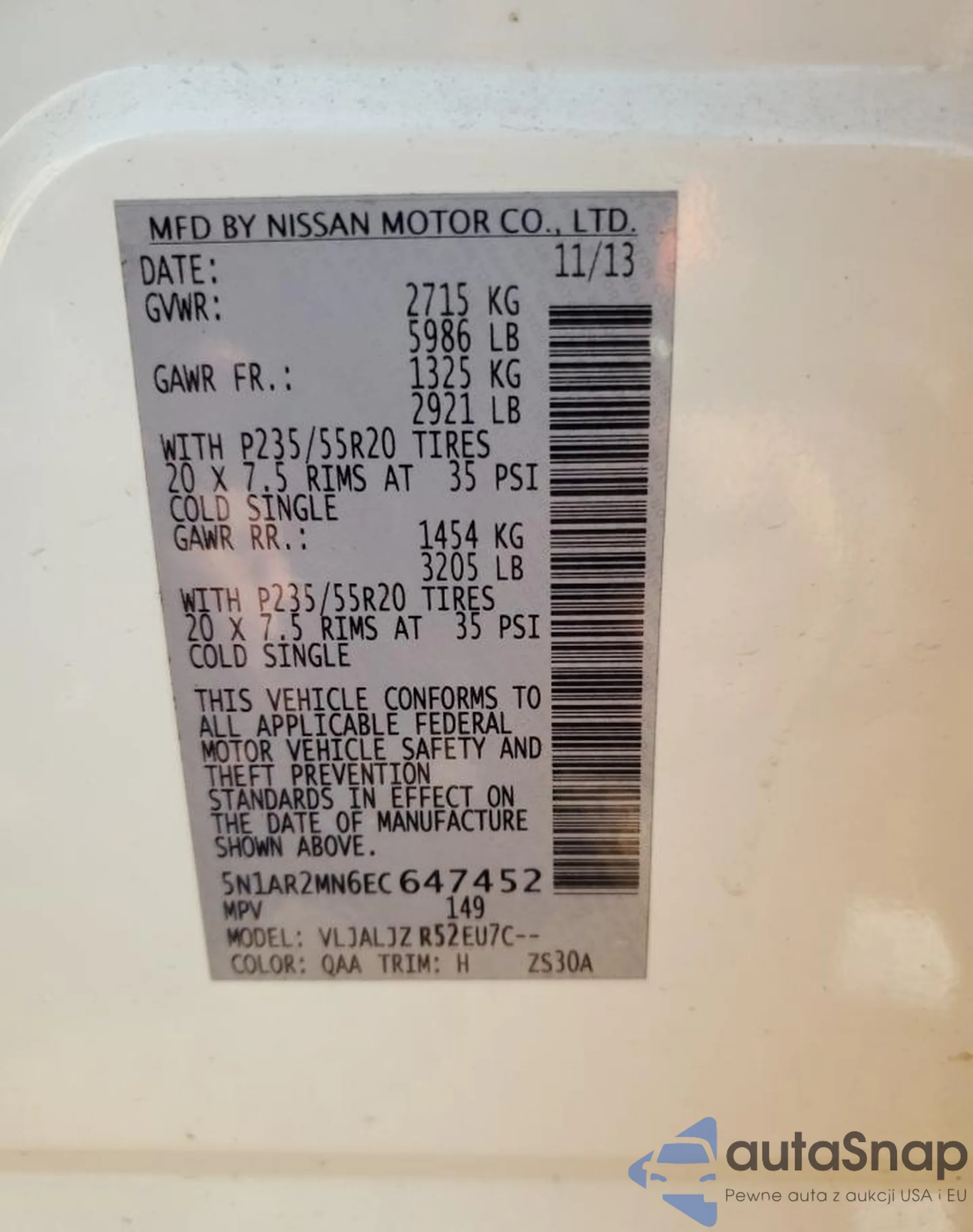 VIN: 5N1AR2MN6EC647452