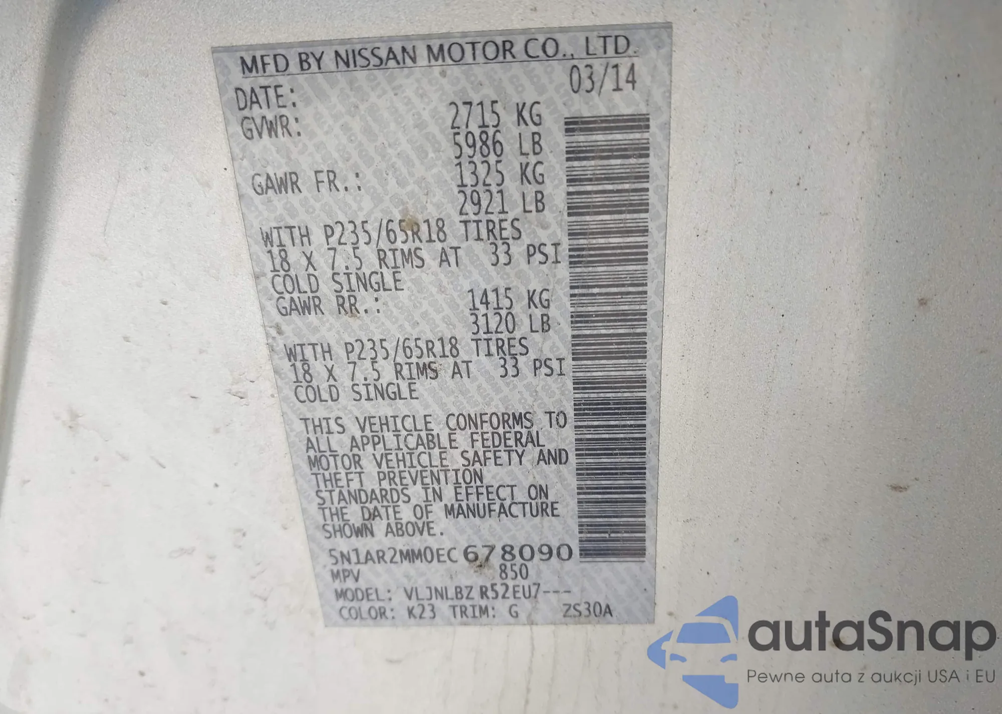 VIN: 5N1AR2MM0EC678090
