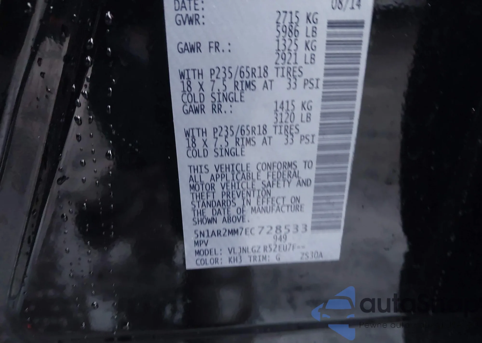 VIN: 5N1AR2MM7EC728533