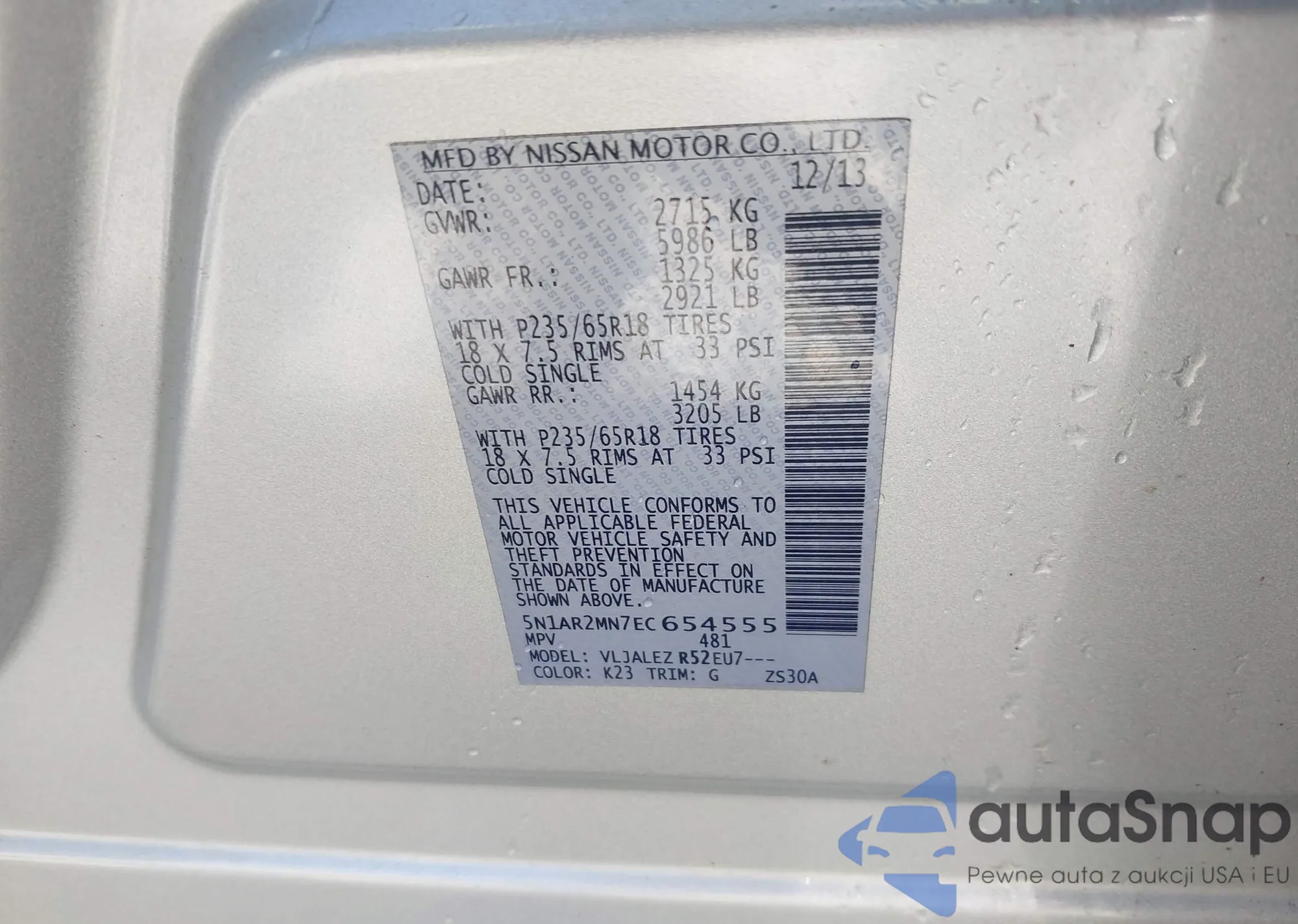 VIN: 5N1AR2MN7EC654555