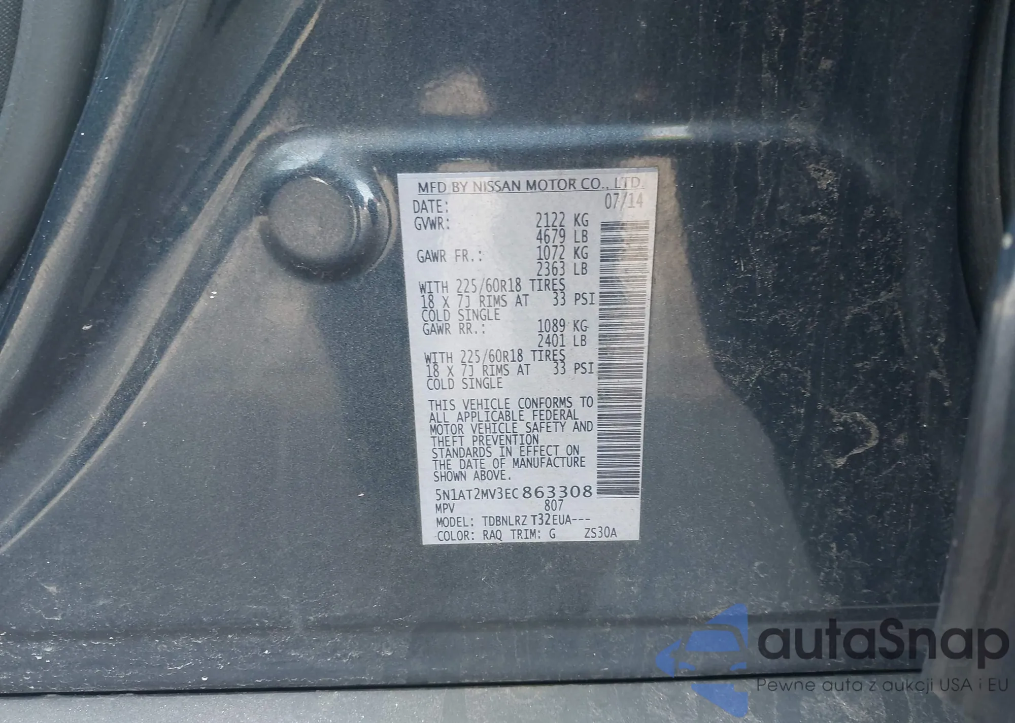 Samochód Nissan Rogue 2014 (VIN 5N1AT2MV3EC863308) nie był wcześniej licytowany. Dokumenty są czyste, przebieg odpowiada lub jest niższy niż średnia rynku. Sprzedaje go firma ubezpieczeniowa – polecamy zakup. Dostawa do portu zajmie ok. 6–8 tygodni.