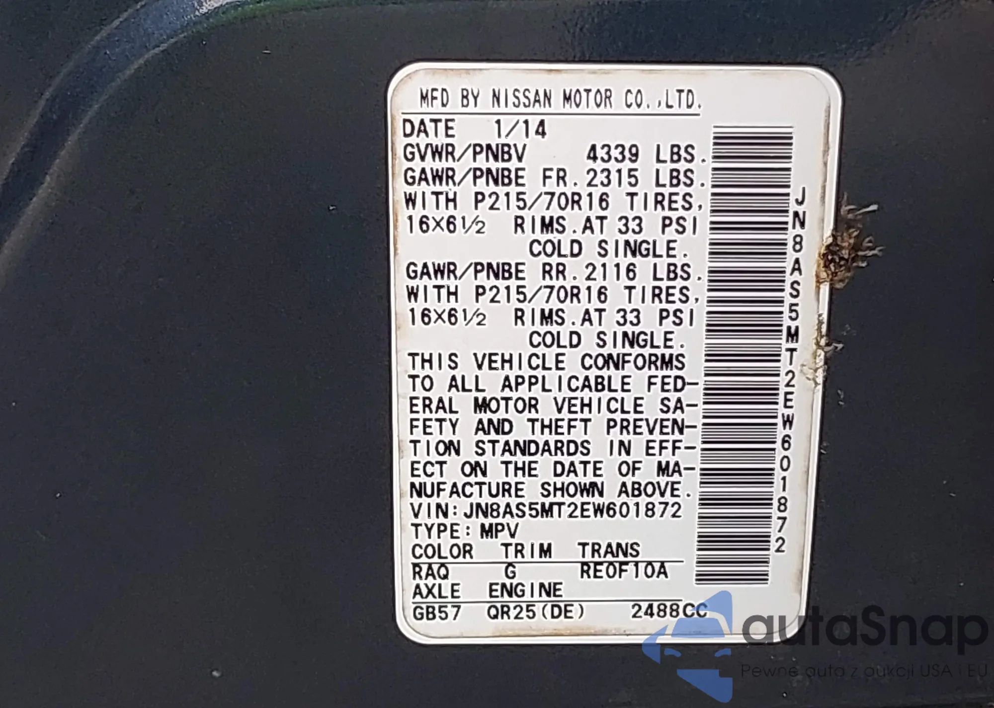 VIN: JN8AS5MT2EW601872