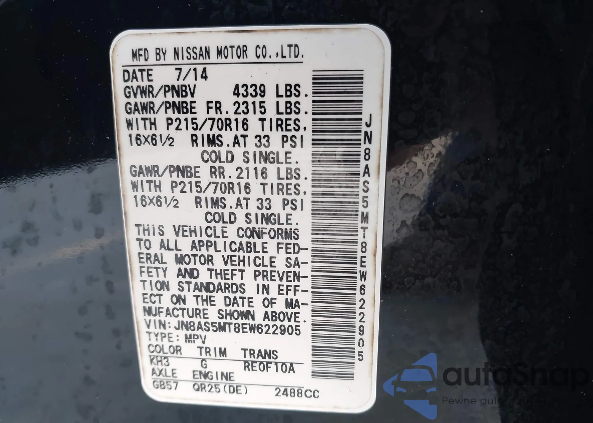 VIN: JN8AS5MT8EW622905