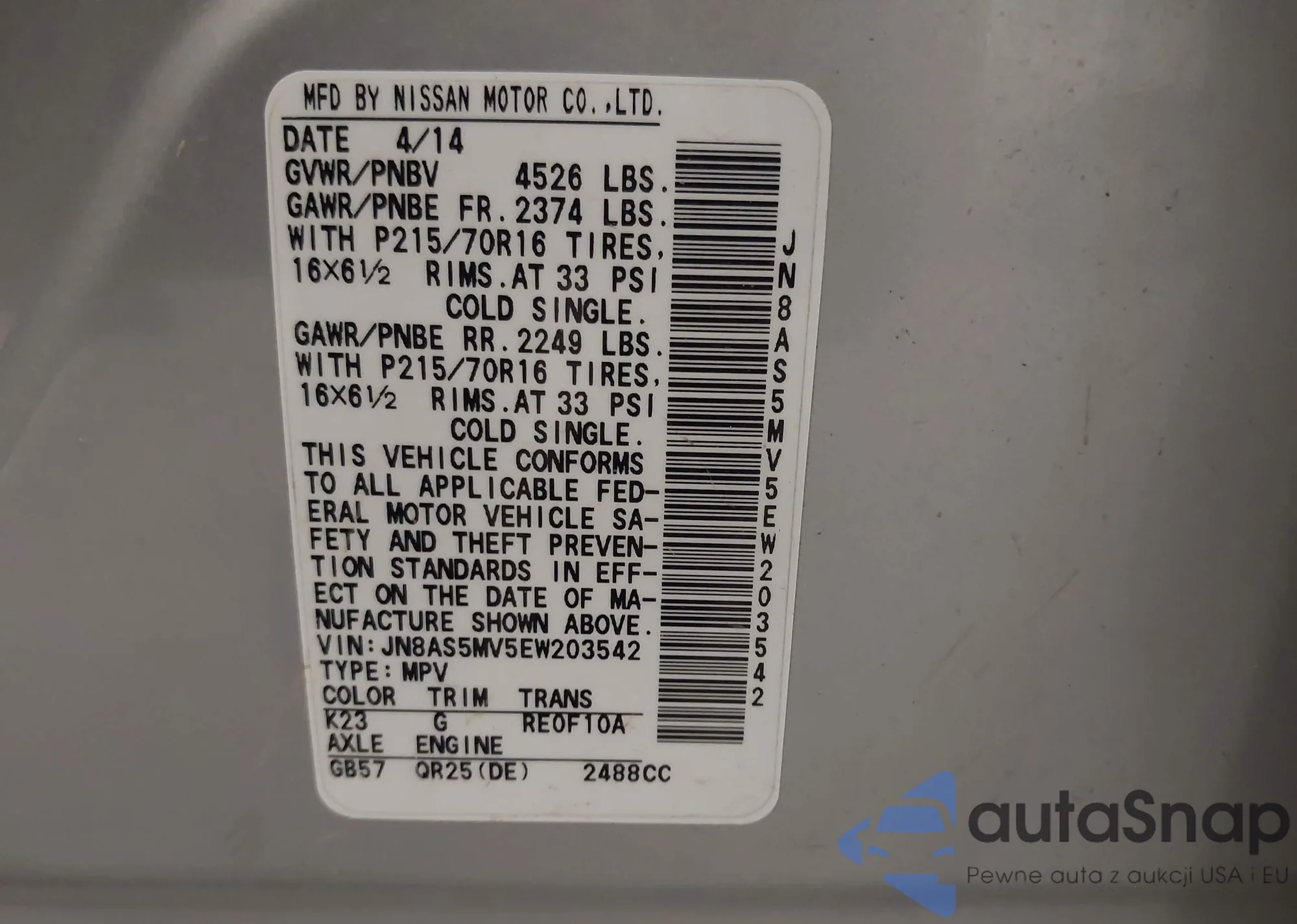 VIN: JN8AS5MV5EW203542