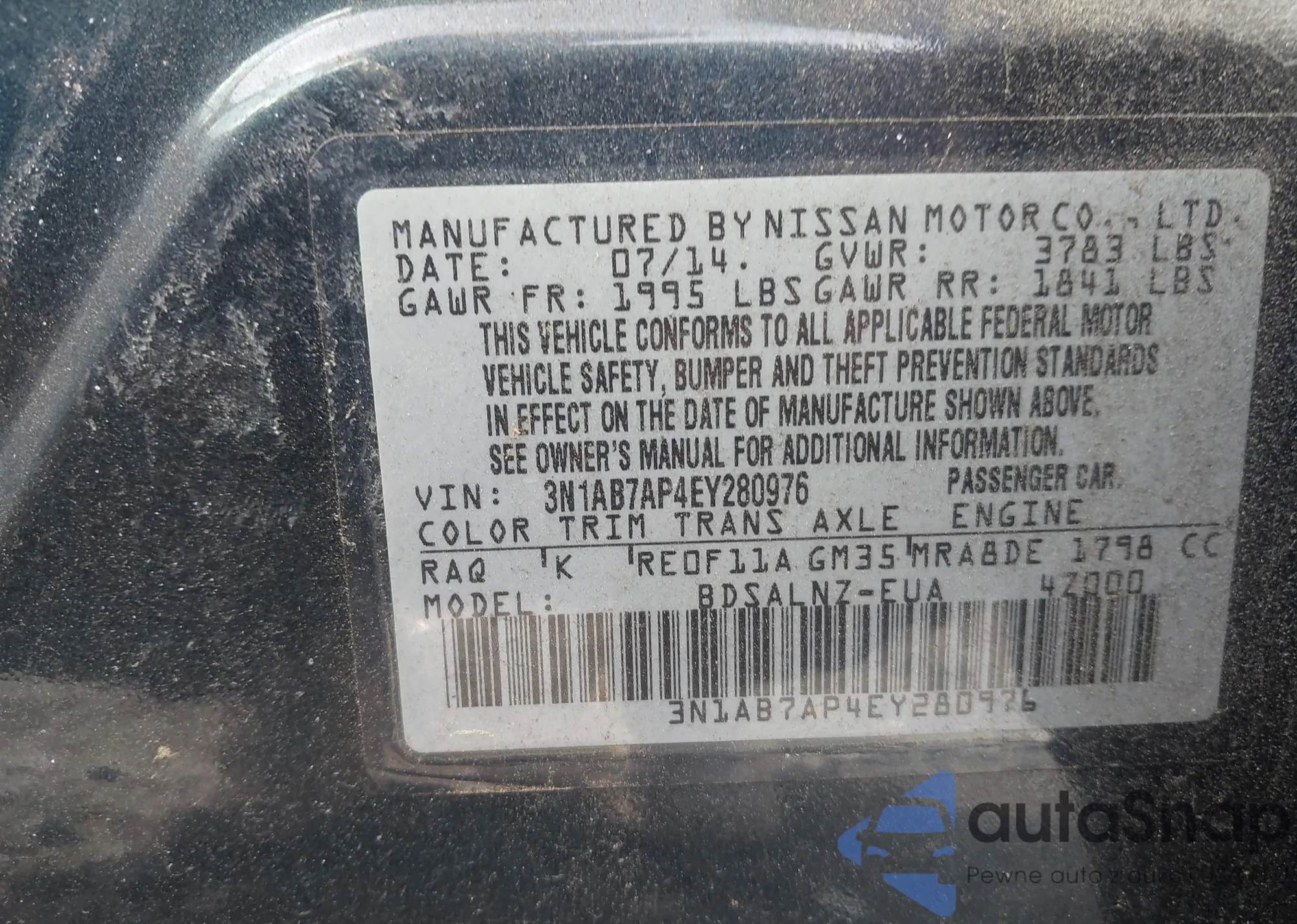 VIN: 3N1AB7AP4EY280976