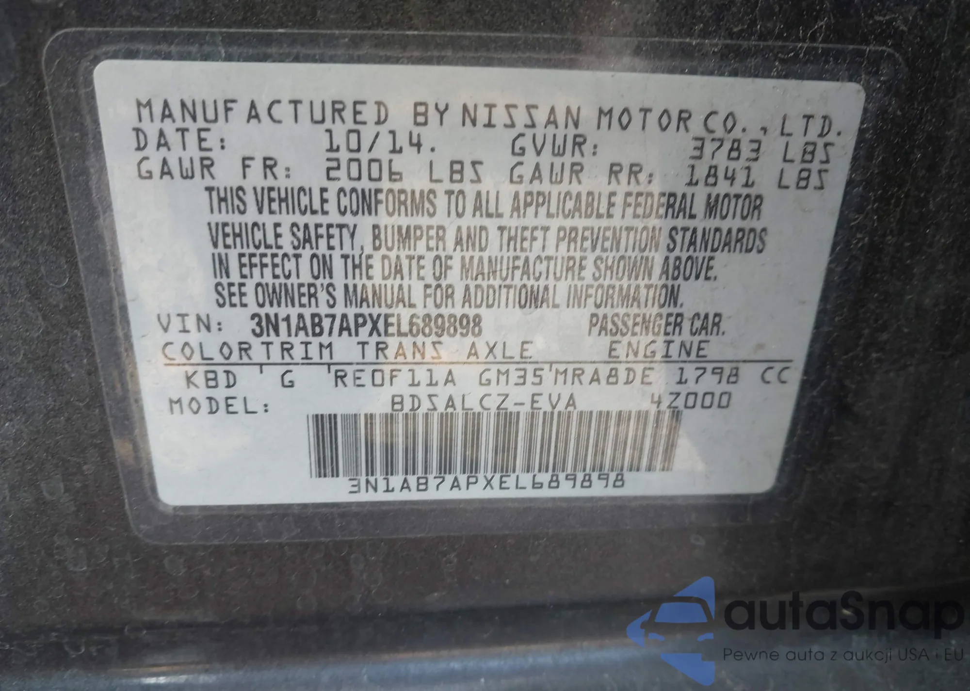 VIN: 3N1AB7APXEL689898