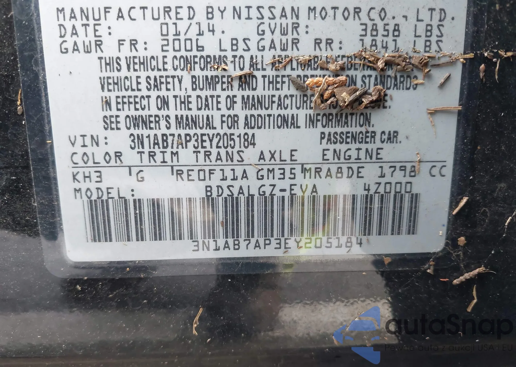 VIN: 3N1AB7AP3EY205184
