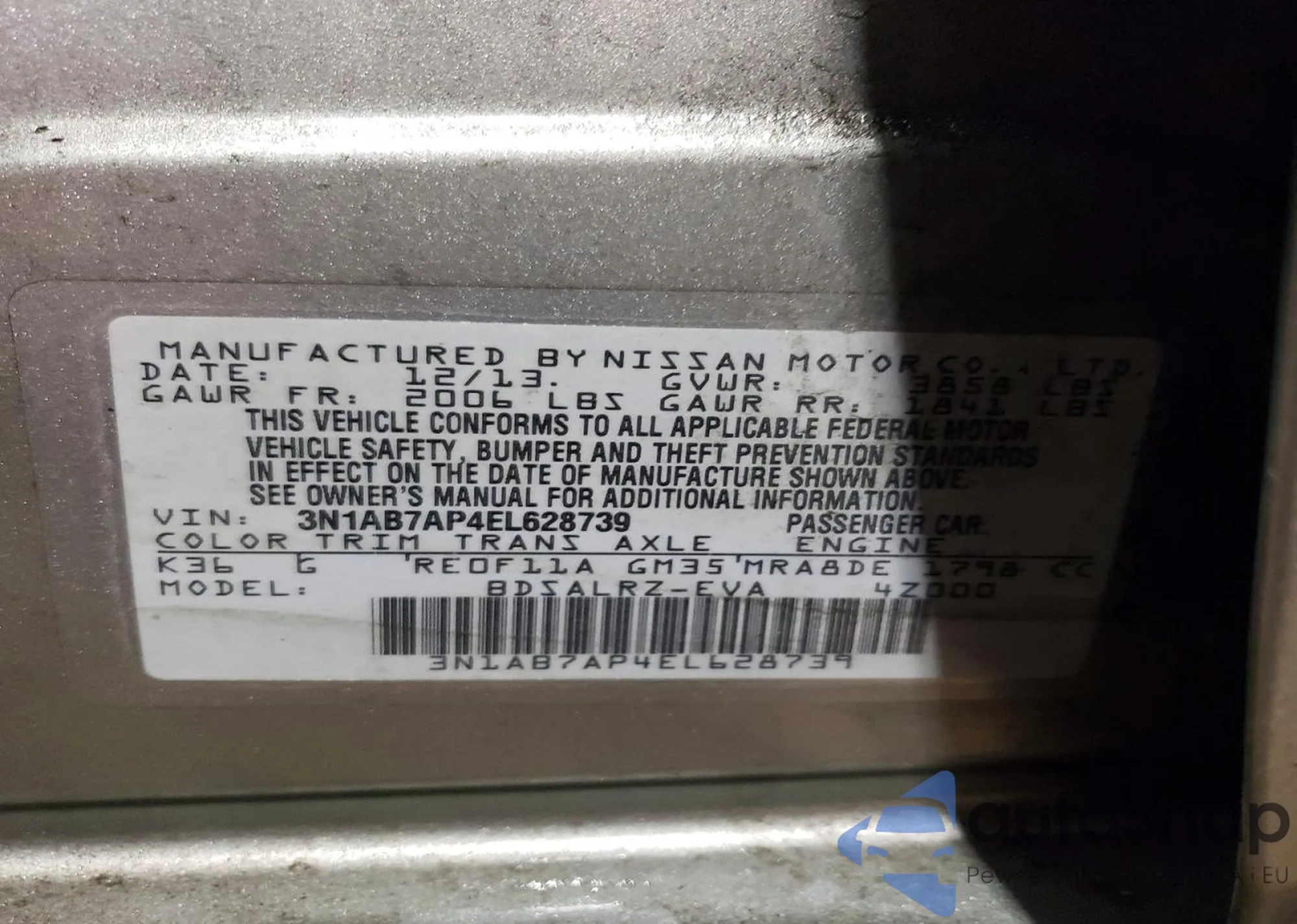 VIN: 3N1AB7AP4EL628739