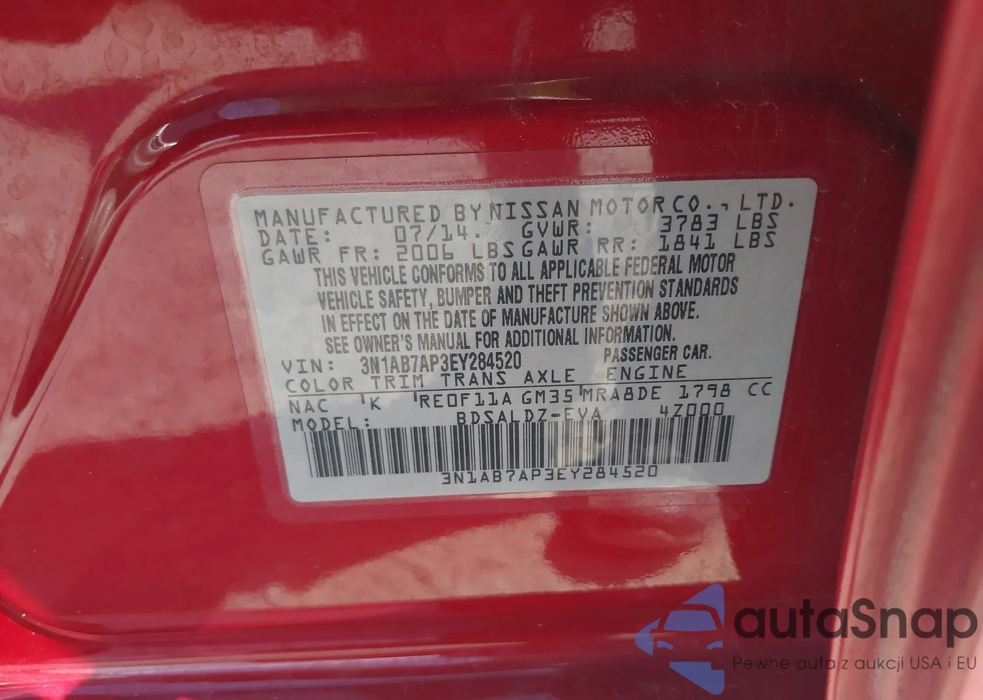VIN: 3N1AB7AP3EY284520