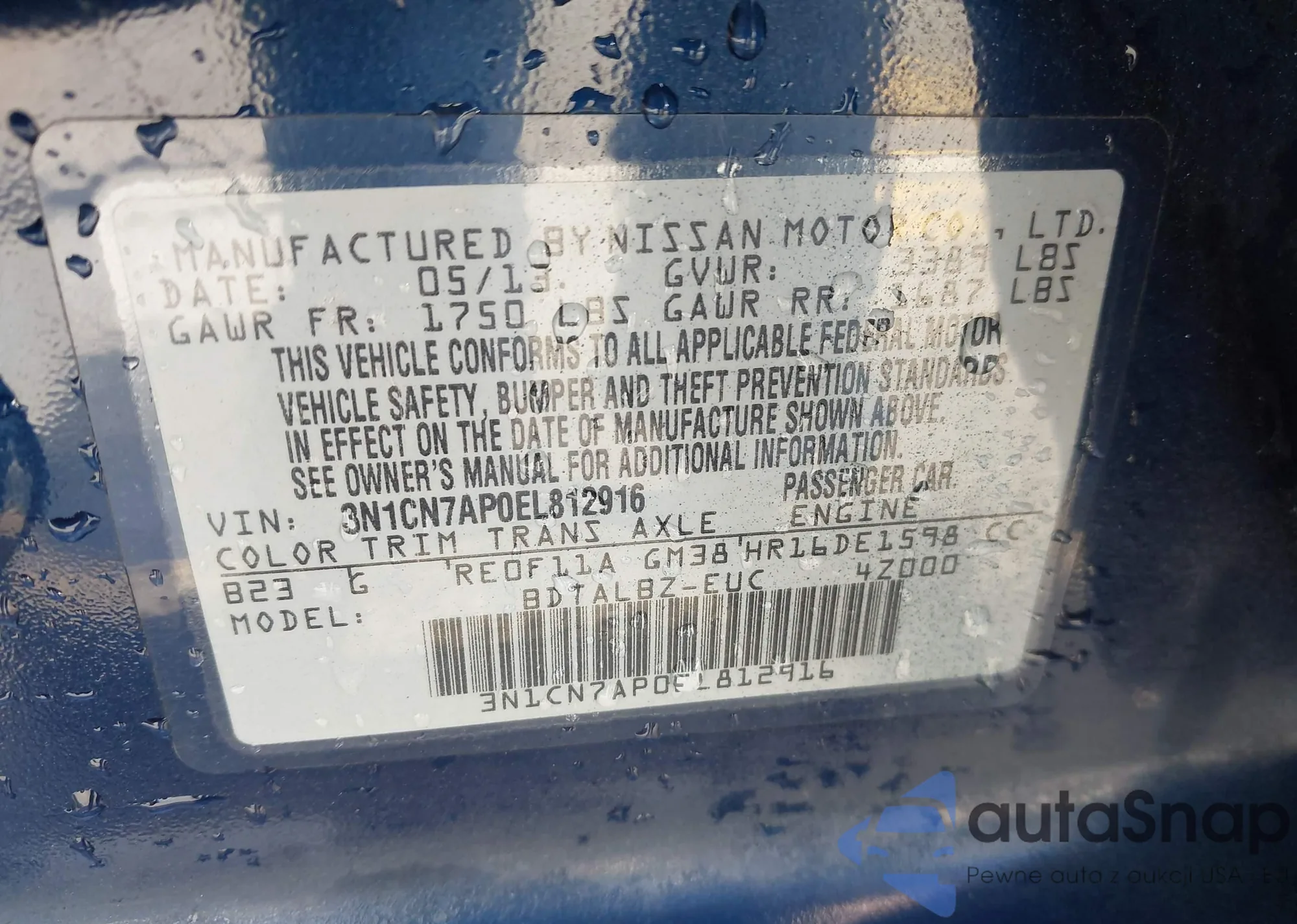 VIN: 3N1CN7AP0EL812916