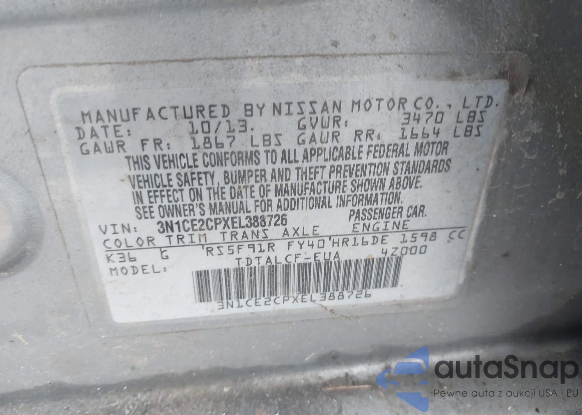 VIN: 3N1CE2CPXEL388726