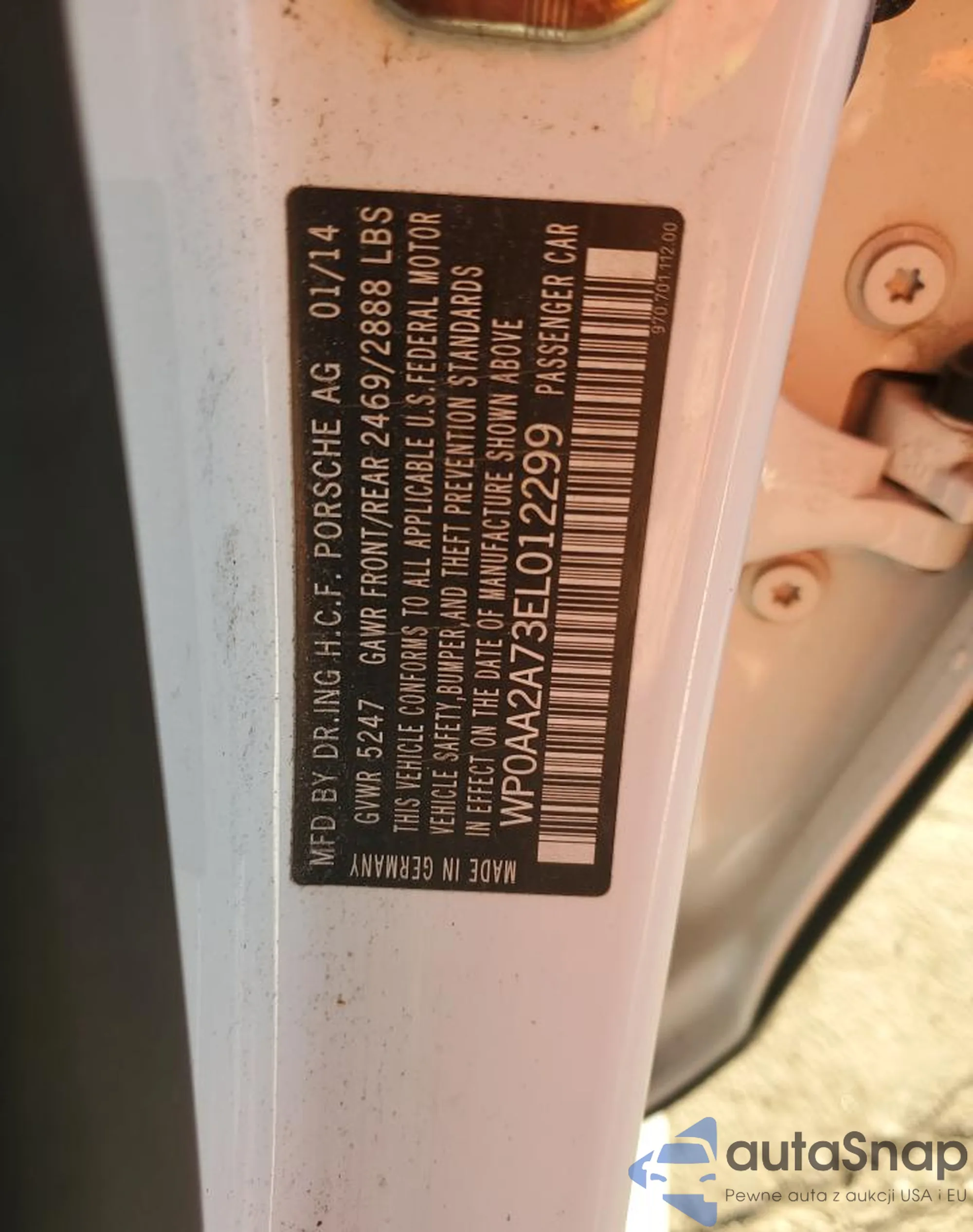• VIN: WP0AA2A73EL012299