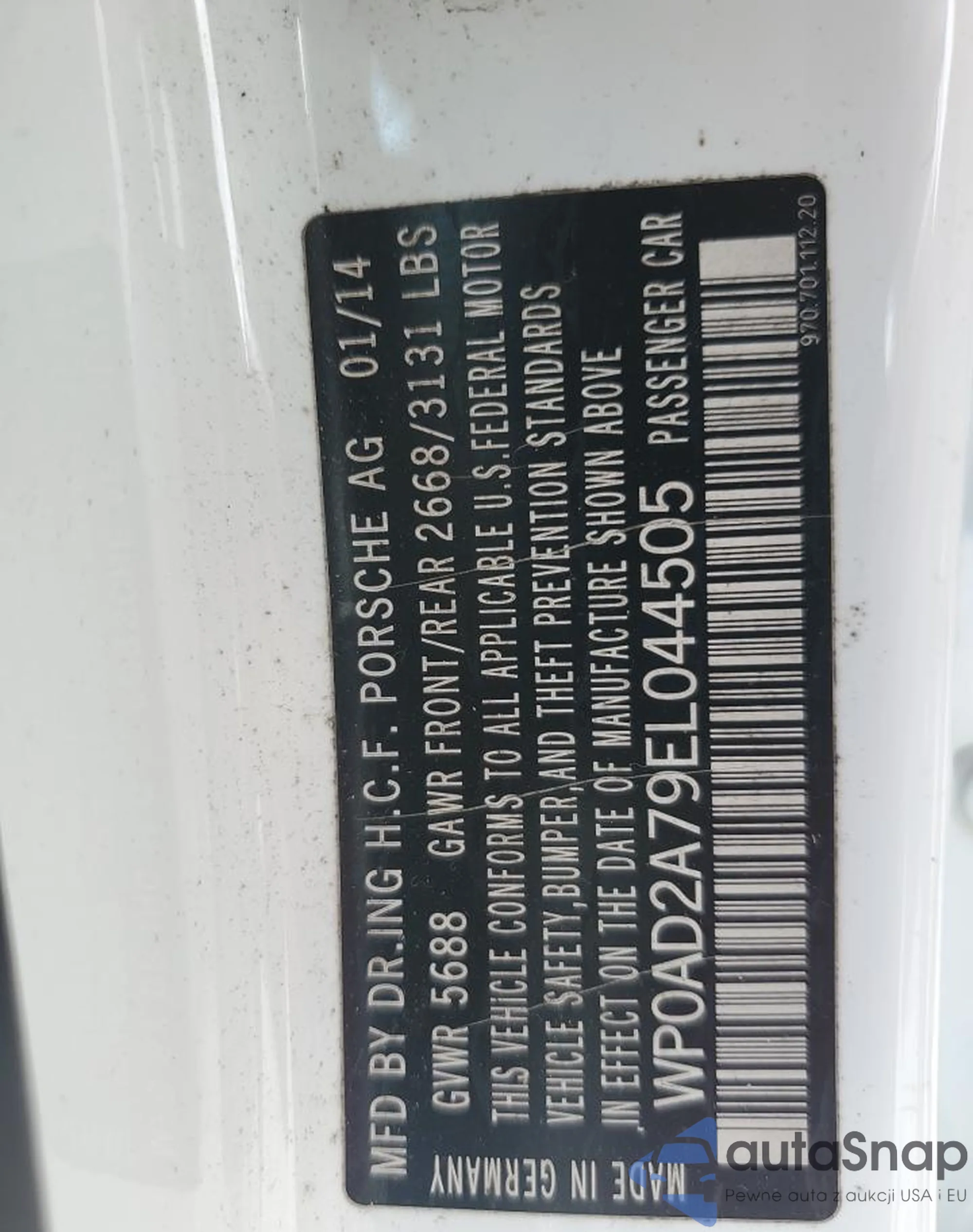 VIN: WP0AD2A79EL044505