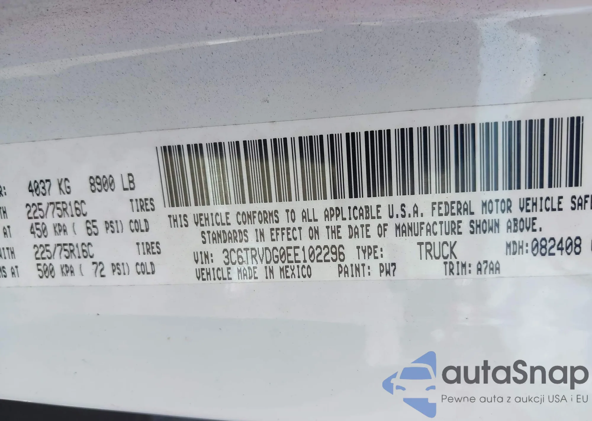 VIN: 3C6TRVDG0EE102296