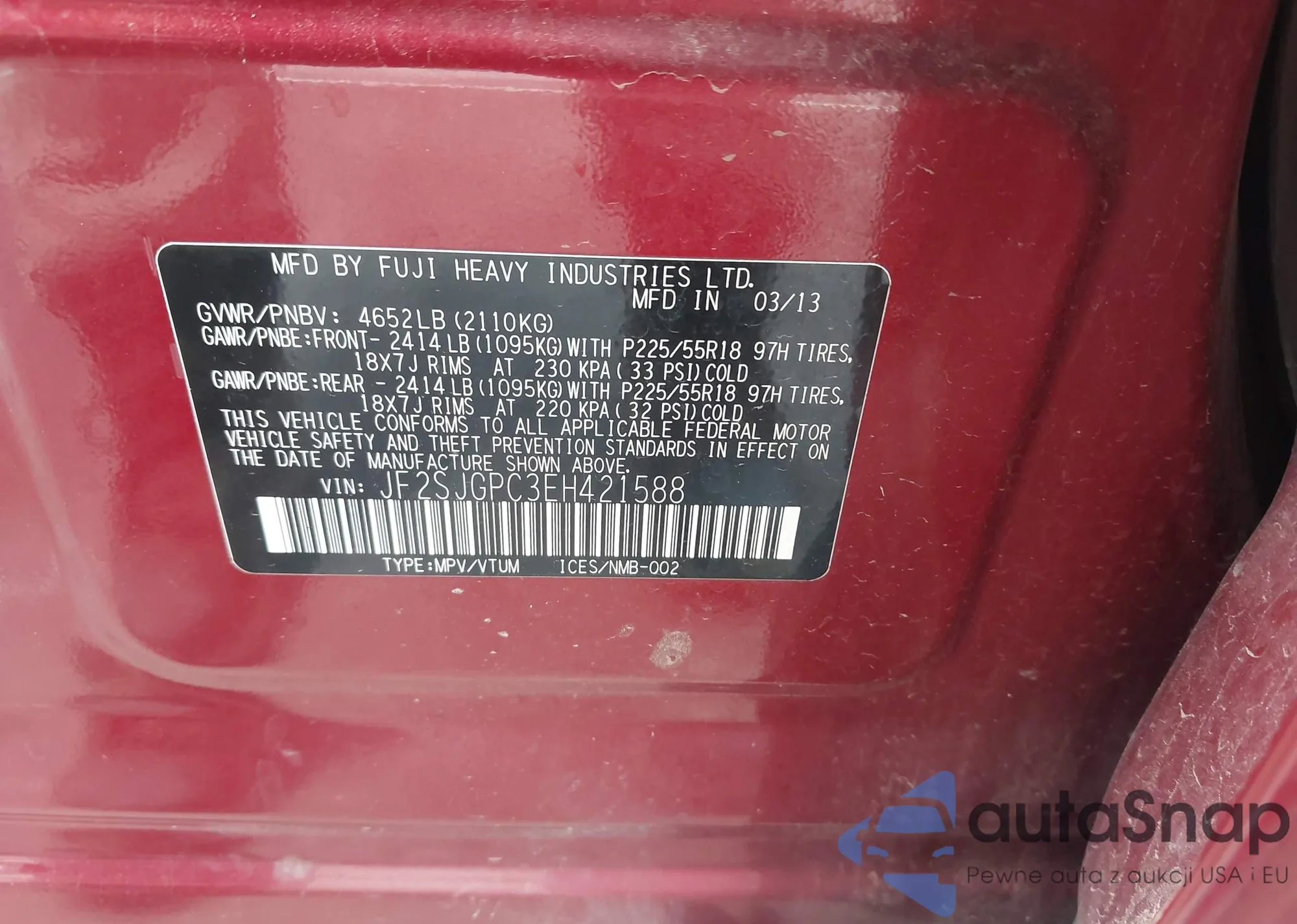 VIN: JF2SJGPC3EH421588