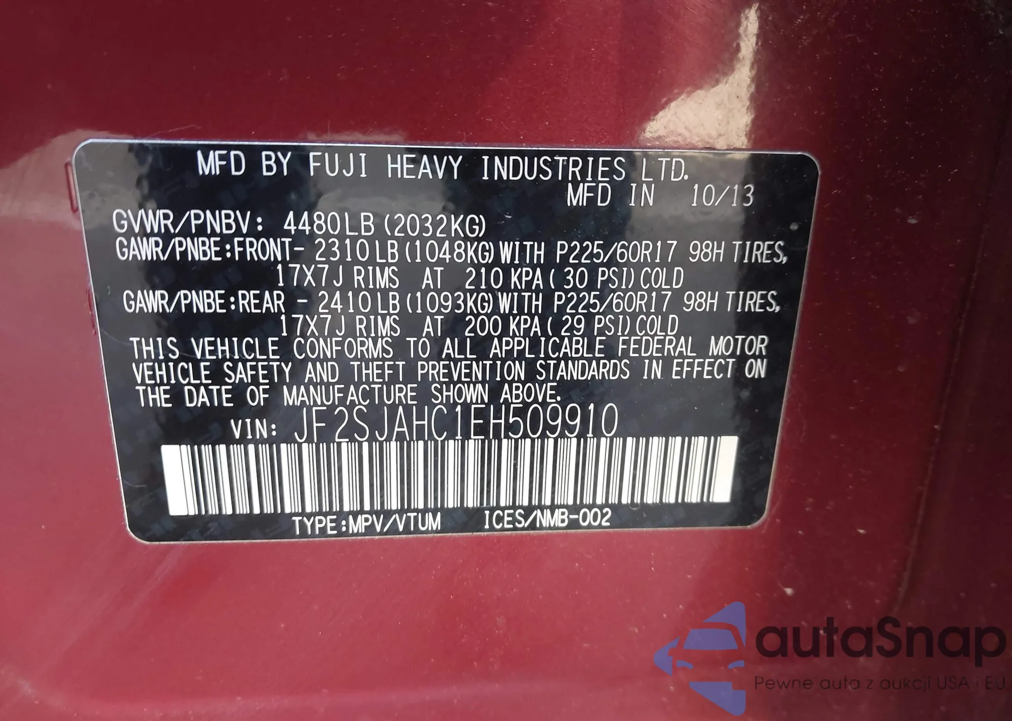 VIN: JF2SJAHC1EH509910