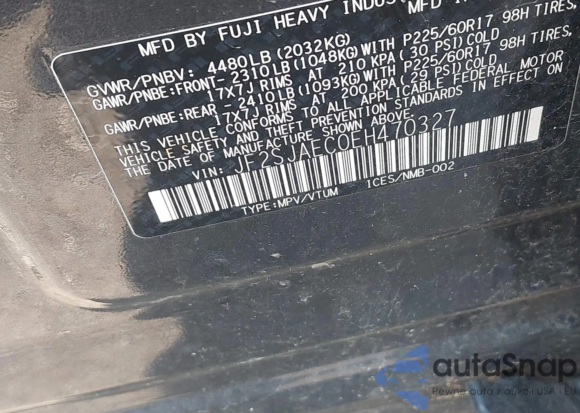 VIN: JF2SJAEC0EH470327