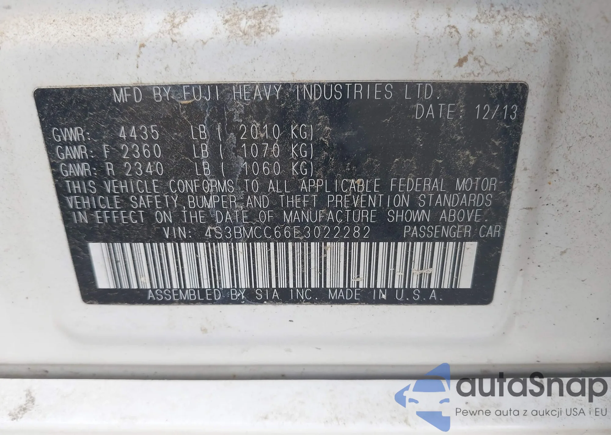 VIN: 4S3BMCC66E3022282