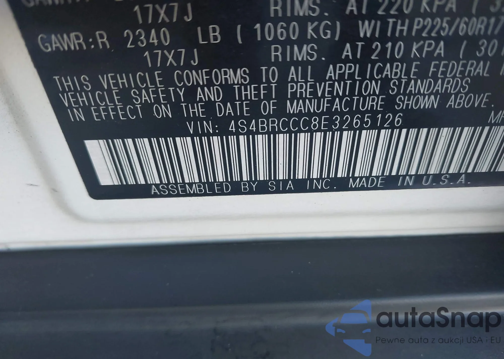 VIN: 4S4BRCCC8E3265126