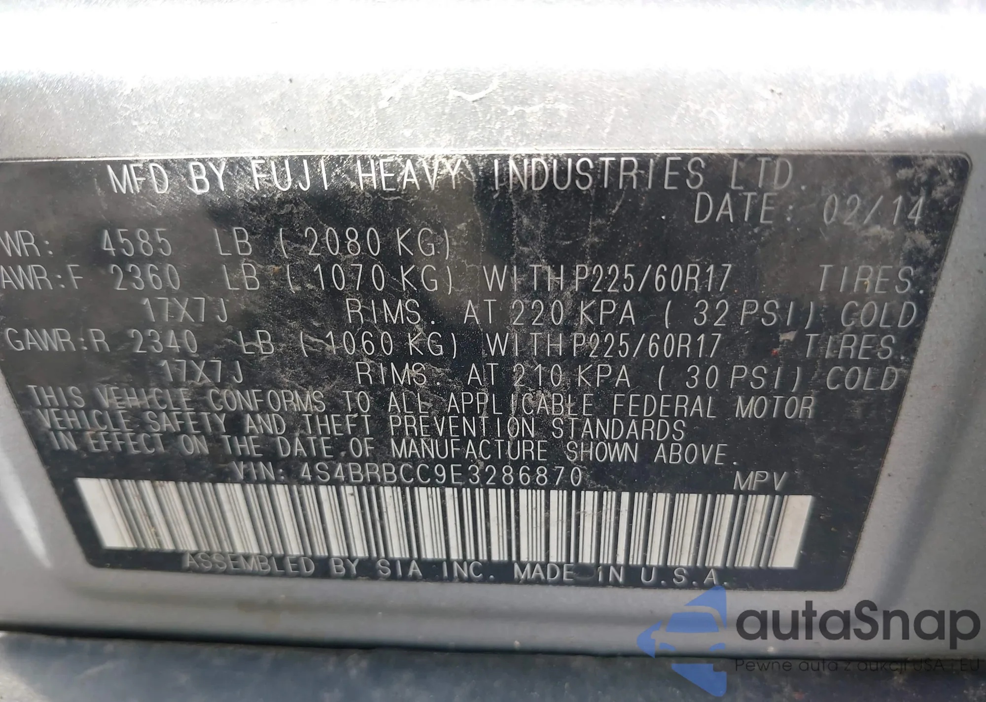 VIN: 4S4BRBCC9E3286870