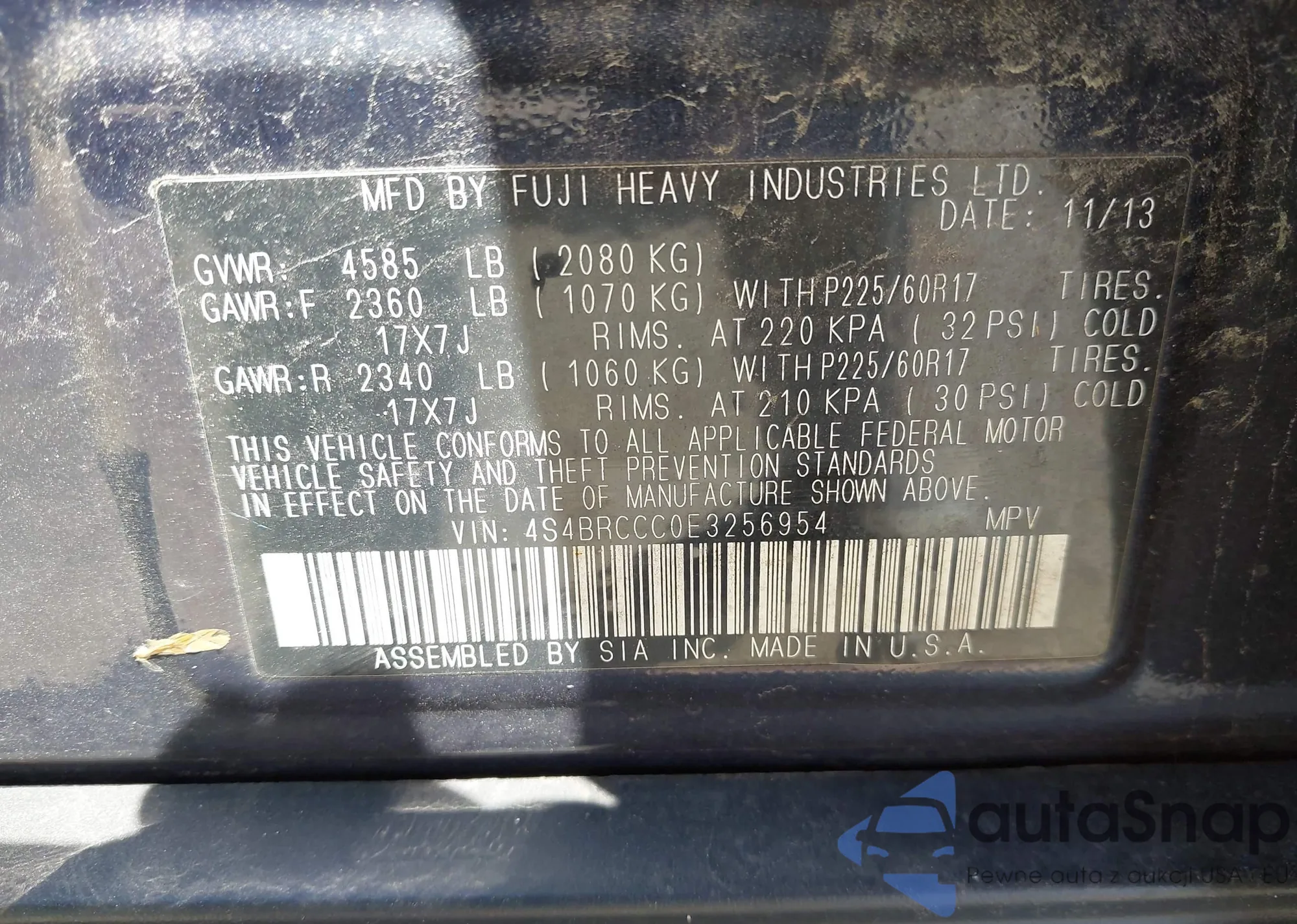 VIN: 4S4BRCCC0E3256954