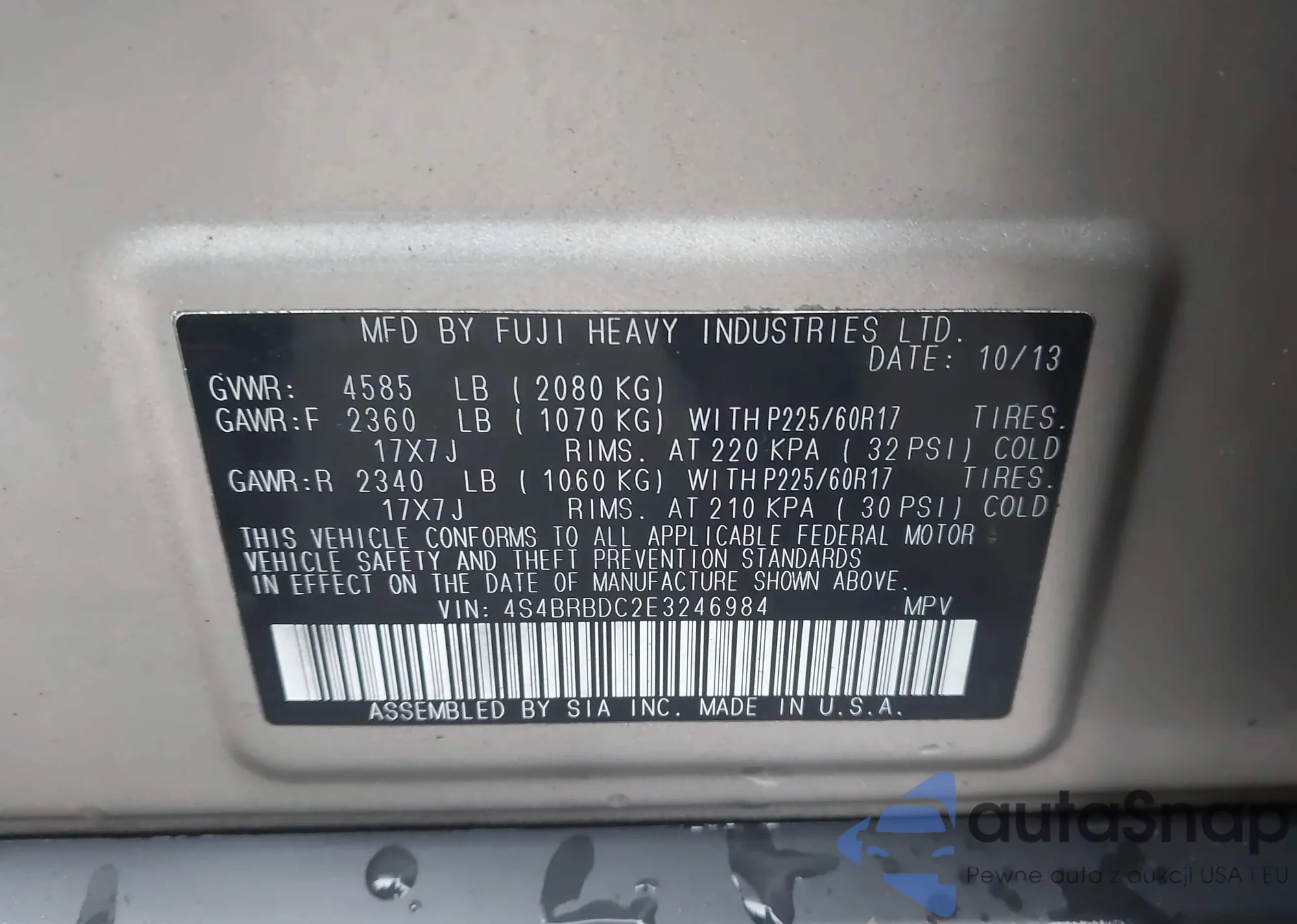 VIN: 4S4BRBDC2E3246984