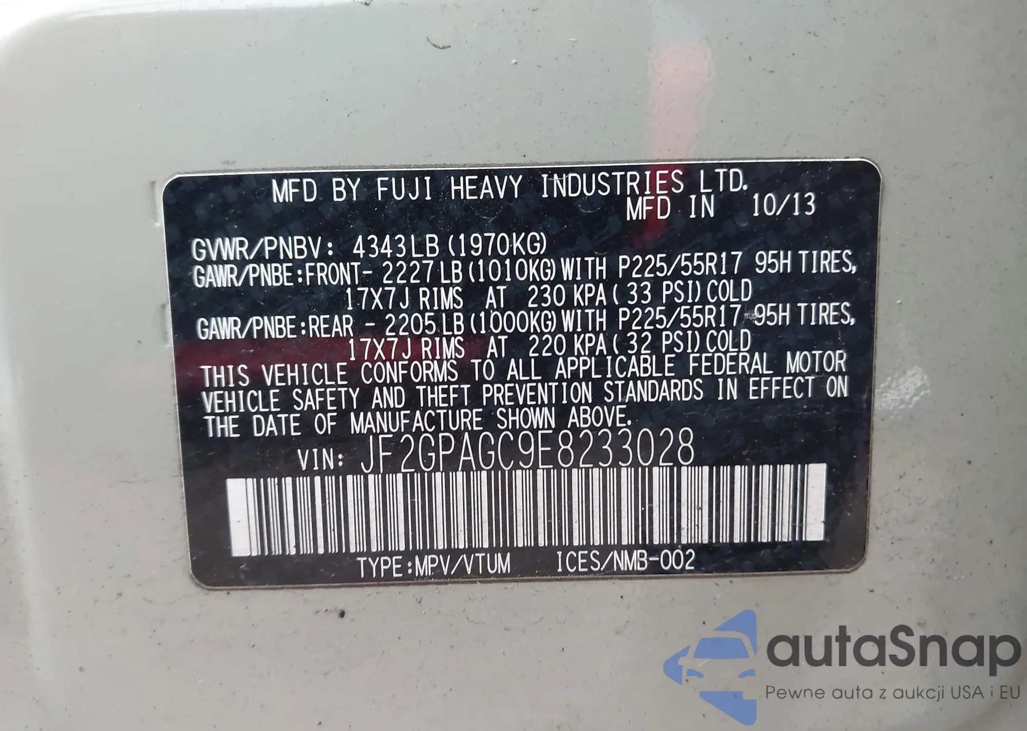 • VIN: JF2GPAGC9E8233028