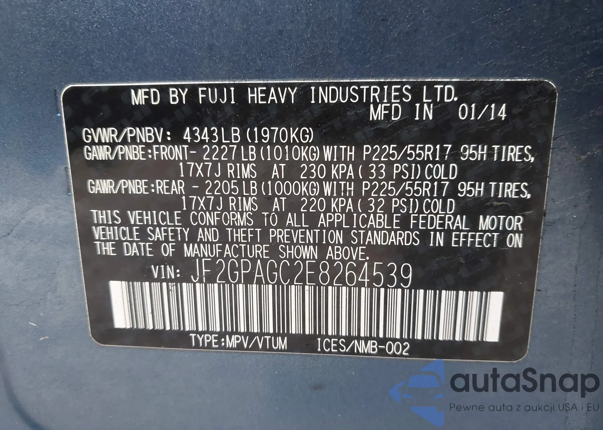 VIN: JF2GPAGC2E8264539