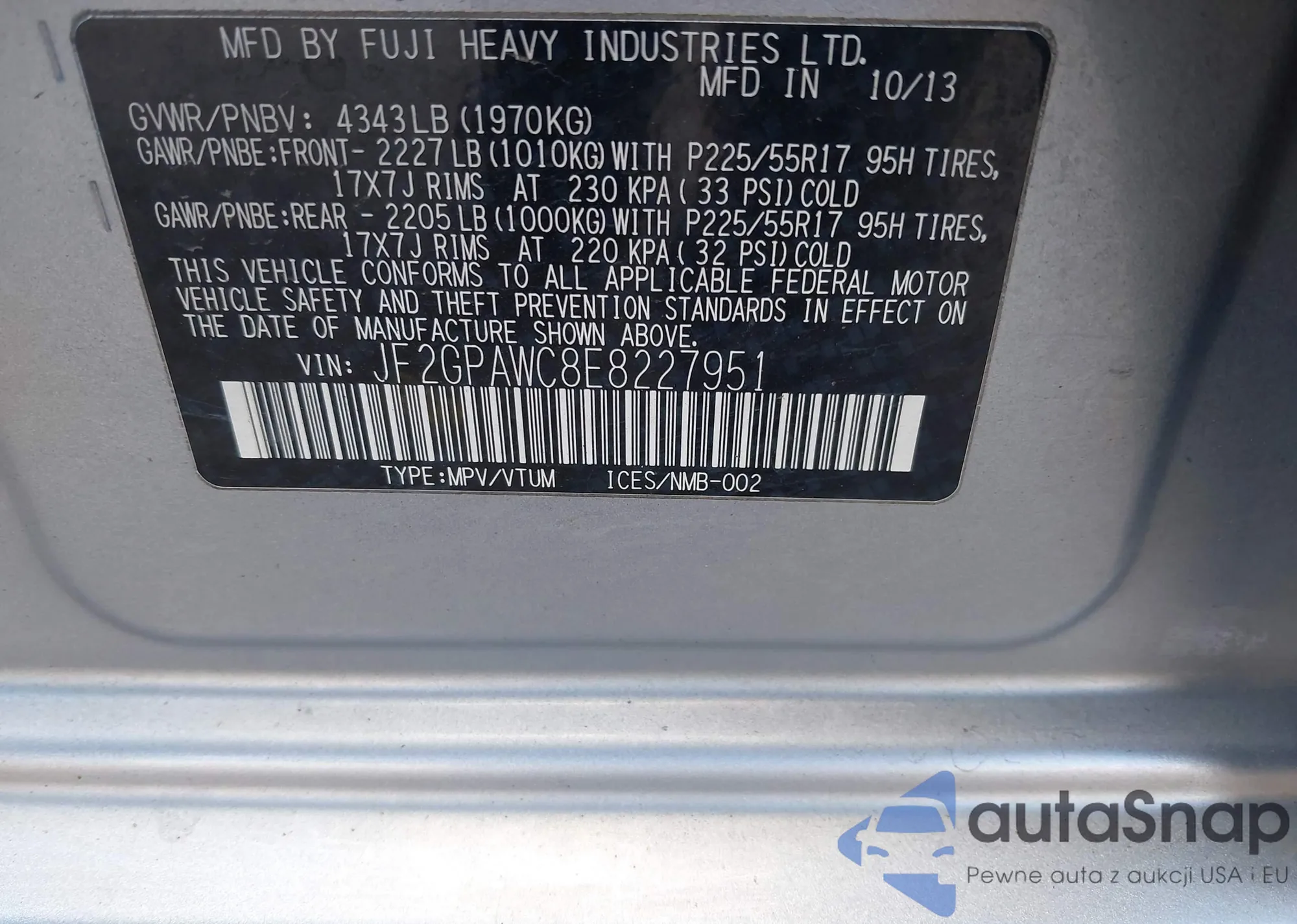 VIN: JF2GPAWC8E8227951