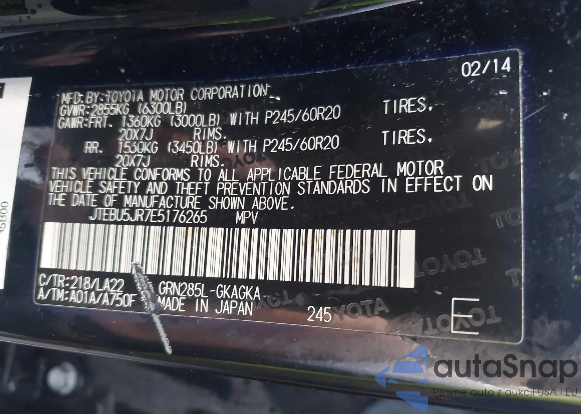 • VIN: JTEBU5JR7E5176265