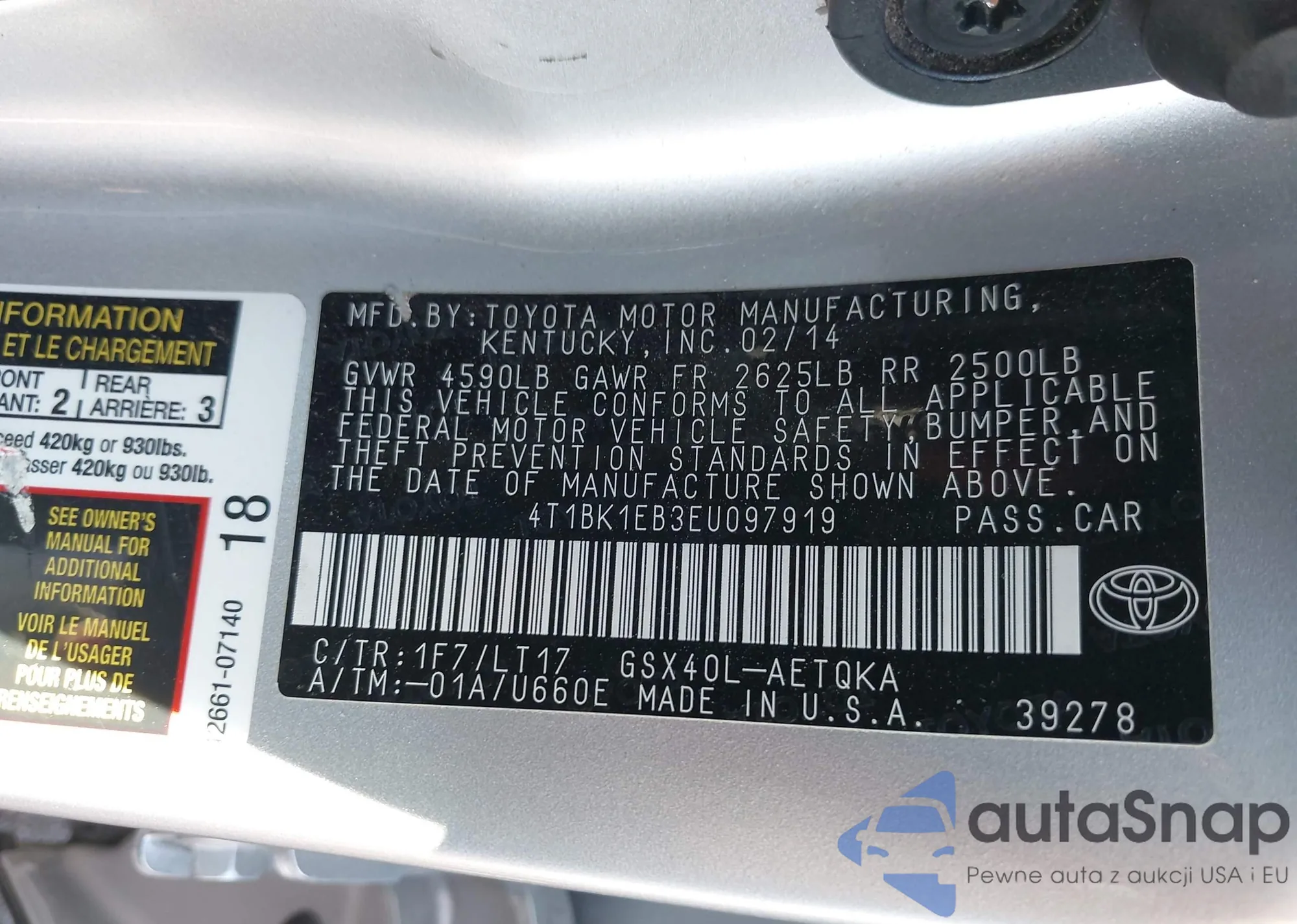 Samochód Toyota Avalon 2014 (VIN 4T1BK1EB3EU097919) nie był wcześniej licytowany. Dokumenty są czyste, przebieg odpowiada lub jest niższy niż średnia rynku. Sprzedaje go firma ubezpieczeniowa – polecamy zakup. Dostawa do portu zajmie ok. 6–8 tygodni.
