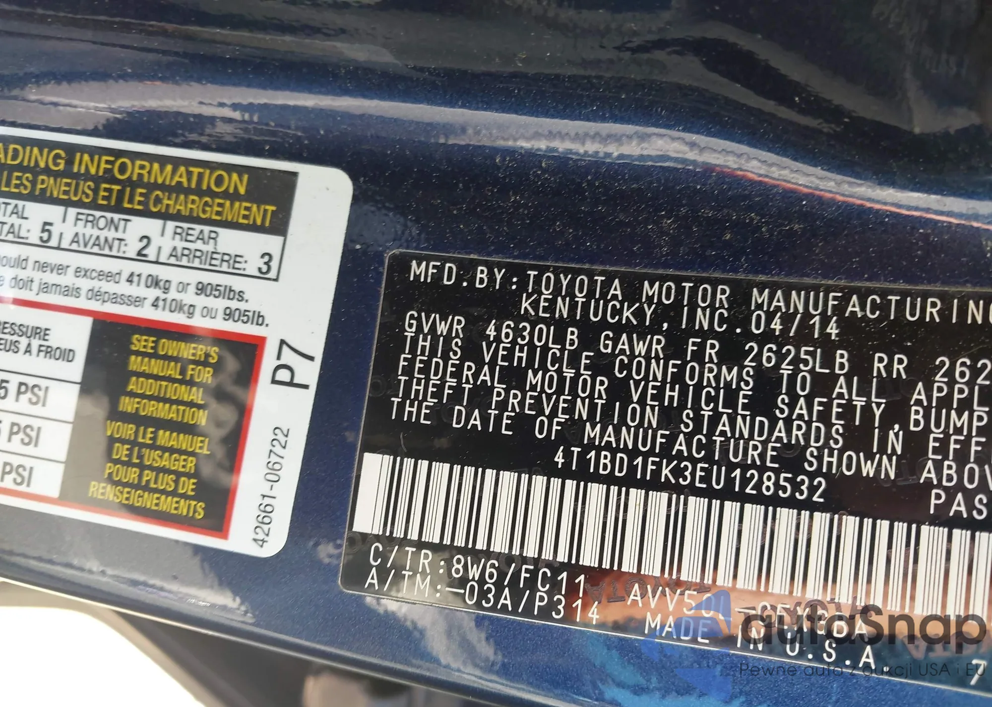 VIN: 4T1BD1FK3EU128532