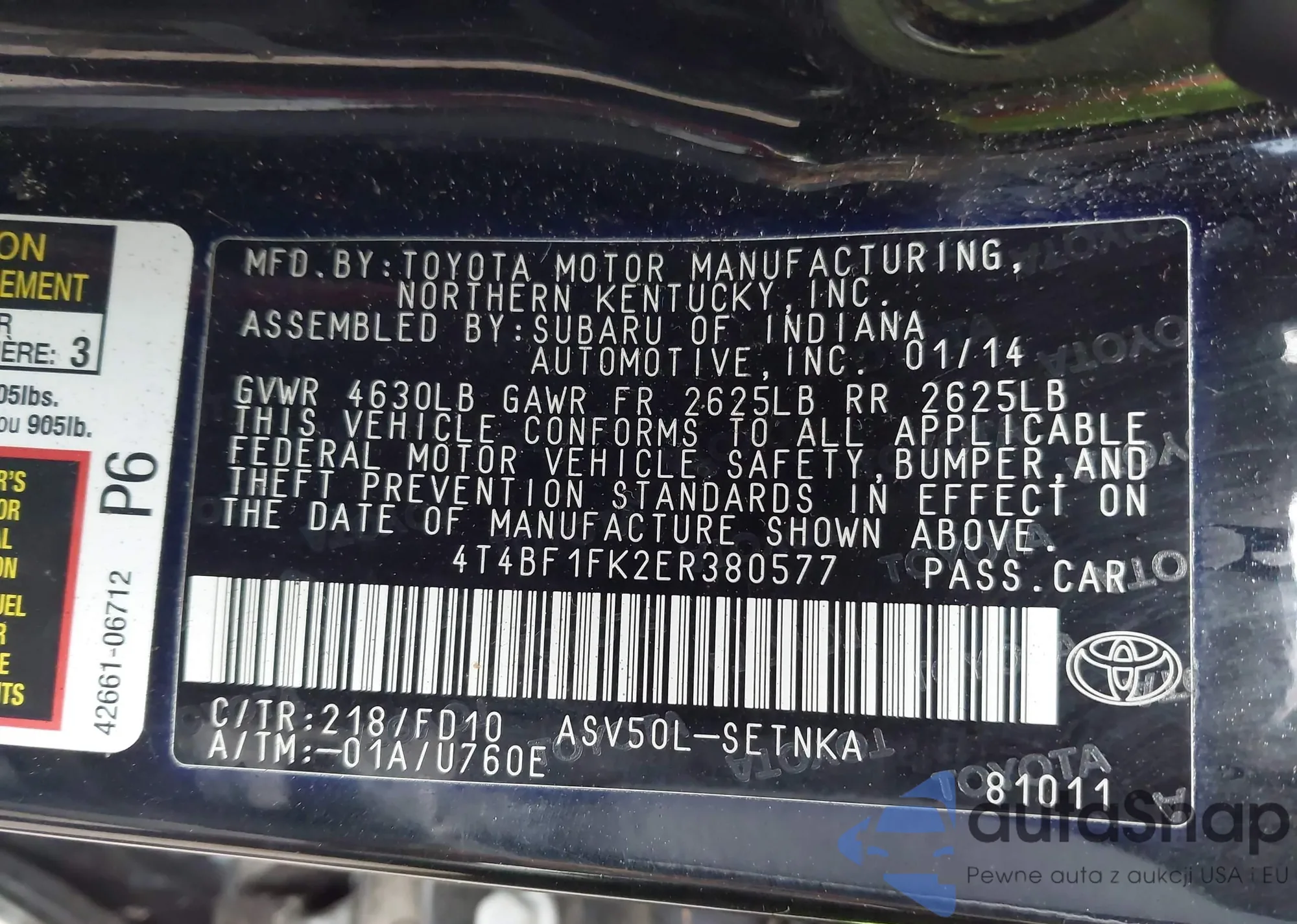 VIN: 4T4BF1FK2ER380577