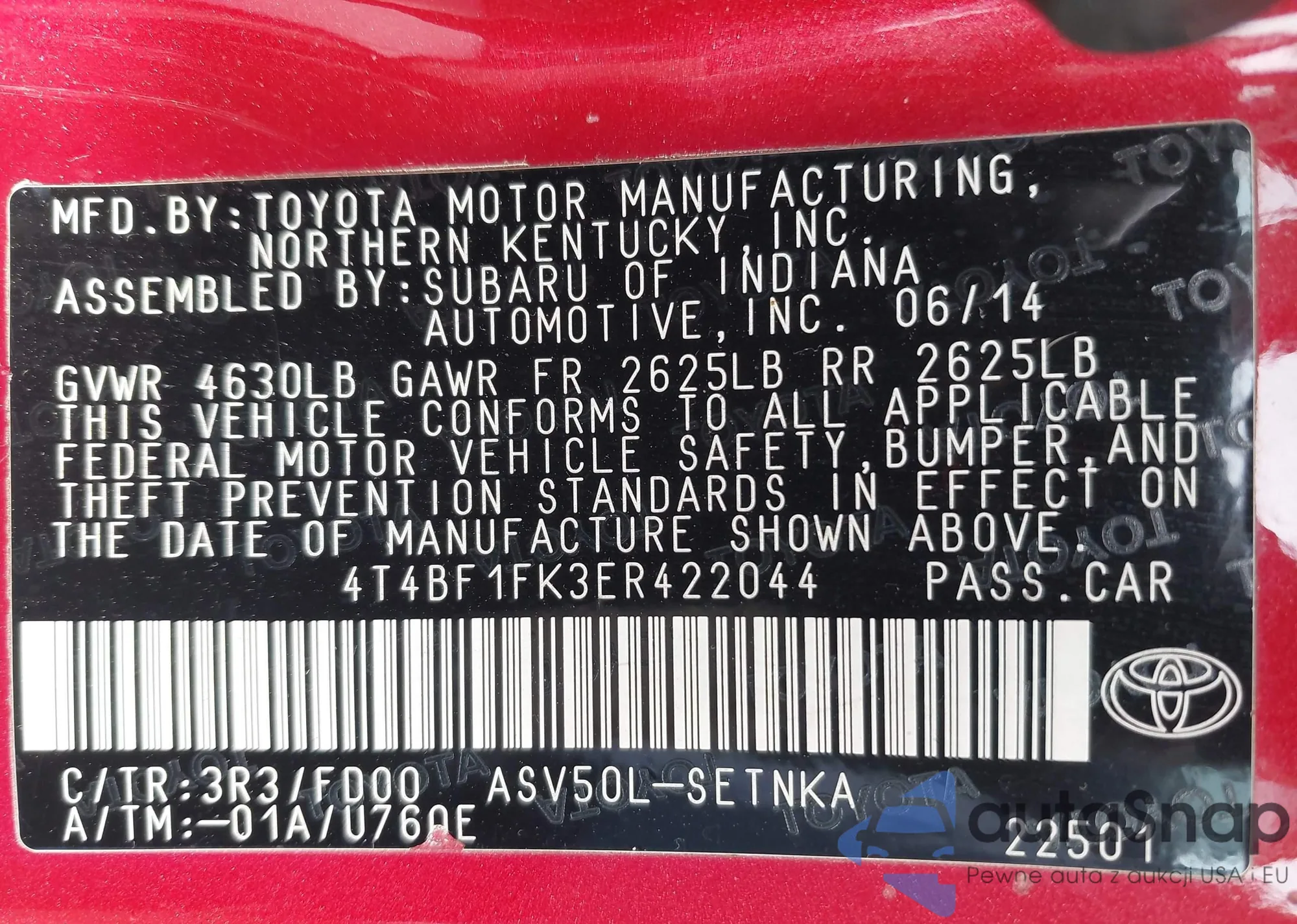 • VIN: 4T4BF1FK3ER422044